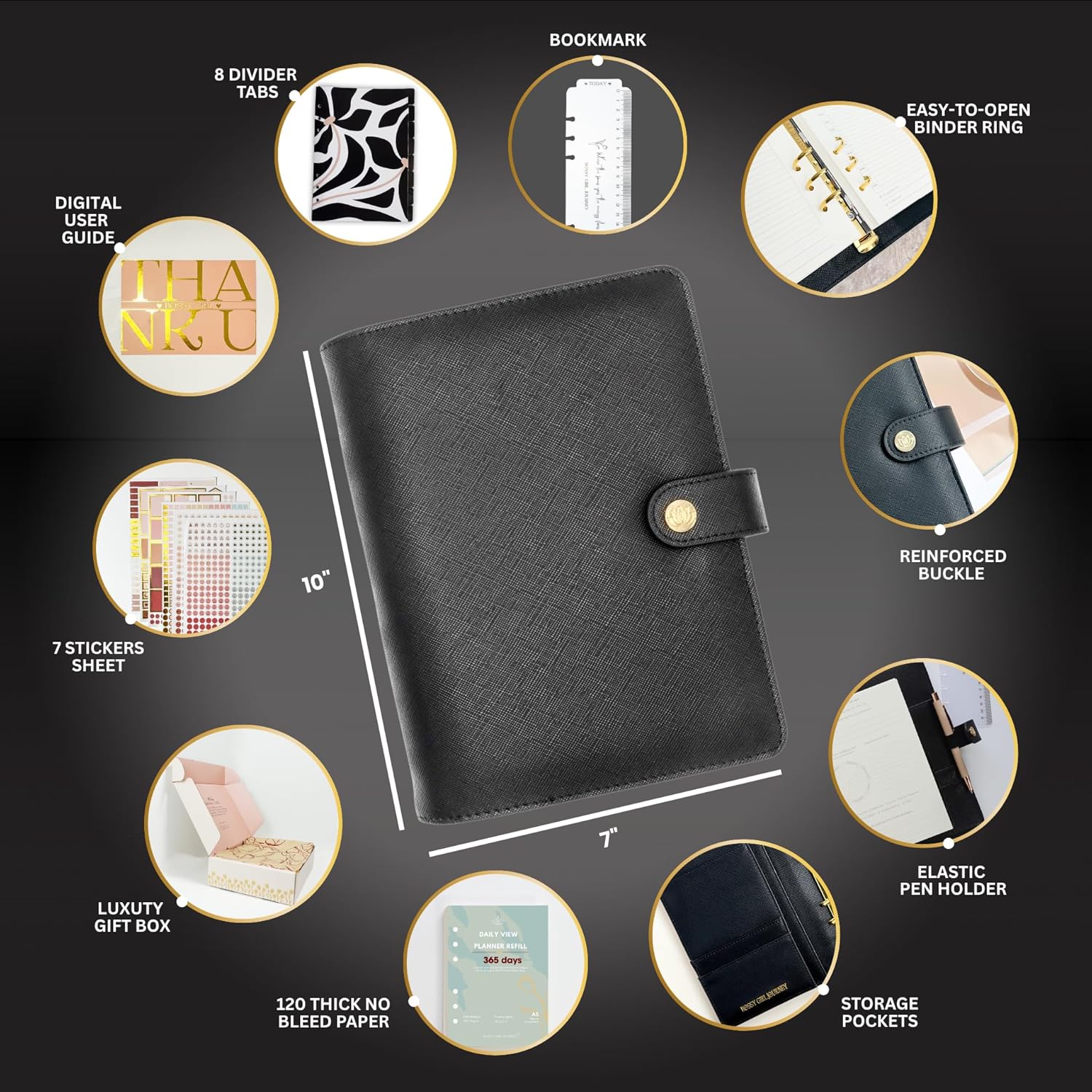 - ✅Premium Refillable A5 Design Includes a stylish A5 binder, 120 GSM thick paper that prevents ink bleed, and a sleek, refillable format. Designed for durability and elegance, this refillable planner binder is perfect for professional and personal life alike.