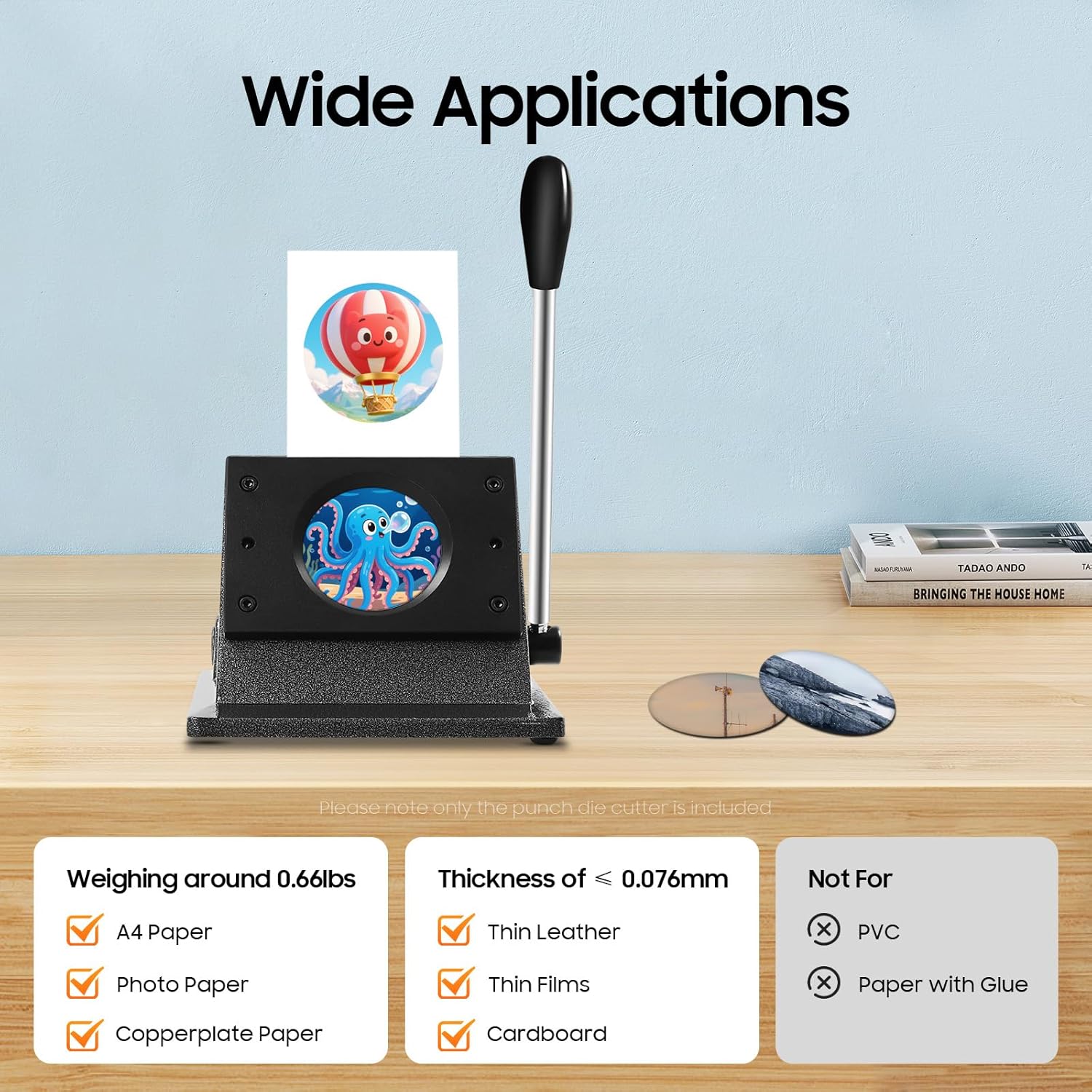- Versatile Crafting Tool β Ideal for DIY projects, badge making, or small business use. Cuts A4 paper, photo paper, copperplate paper, and moreβperfect for hobbyists and professionals alike.