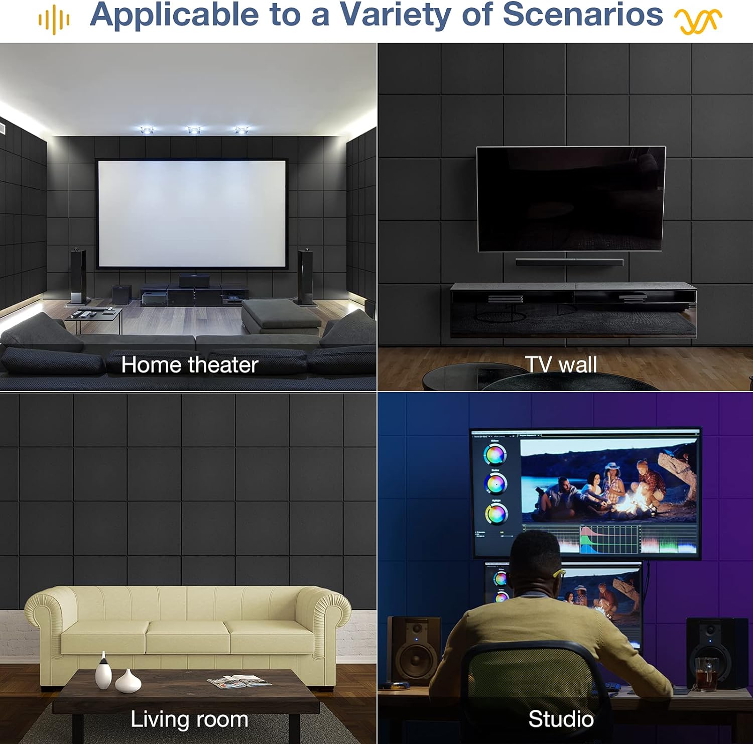 - What's the Effect: Soundproofing panels are an easy, elegant acoustic fix for nearly any space. Thanks to the high density, the tiles are great for reducing background noise, echoes, reverberation time(RT), and decrease standing waves, improves speech intelligibility, and help increase sound clarity in a room or space