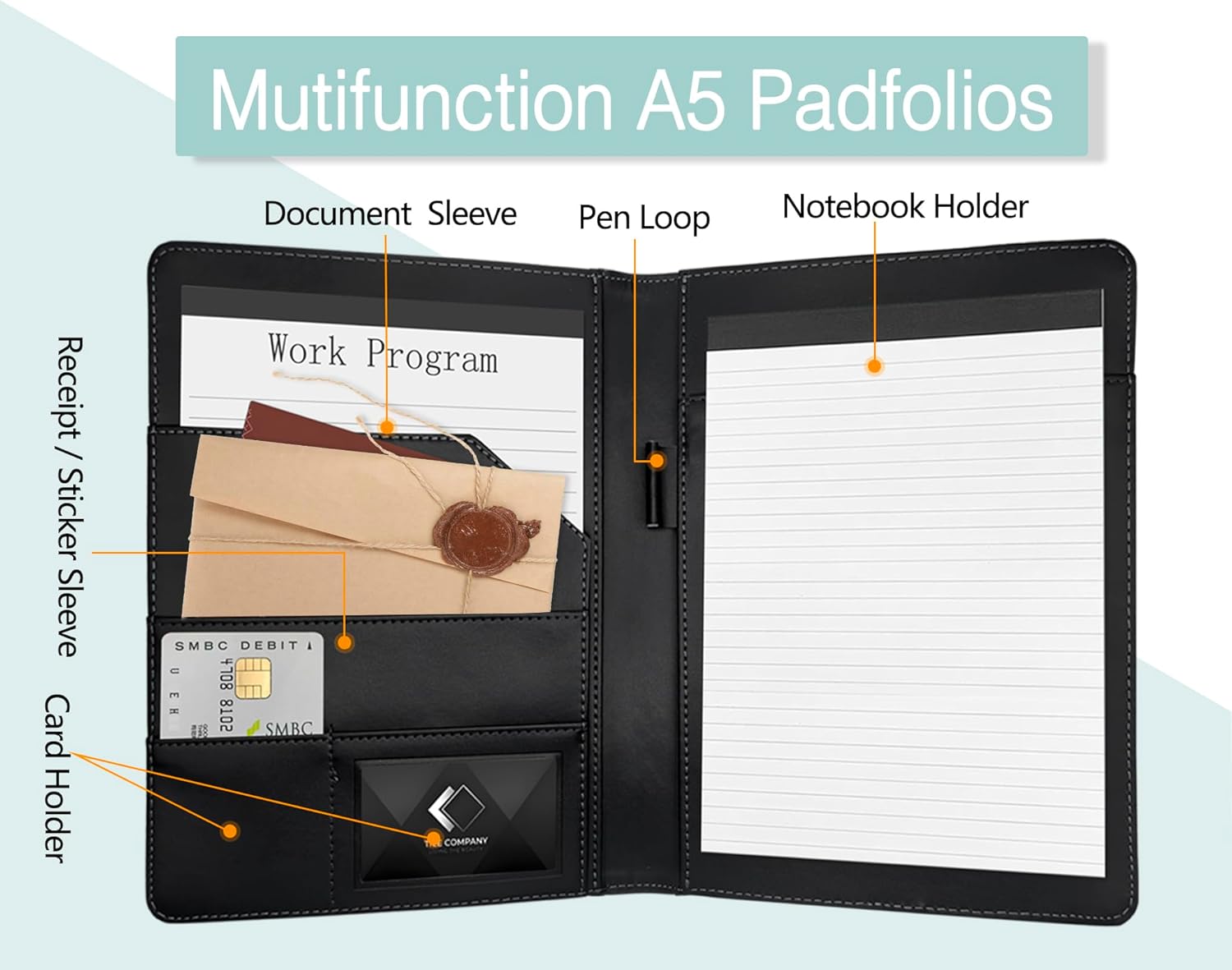 - 【Simple Design Portfolio】The mini portfolio binder has enough pockets in the inside for business cards, ID, notes and a pen loop, looking very professional and elegant. This A5 portfolio is very well made of good quality PU leather and is very easy to carry with you for quick meetings at work or other daily use. (paper and pen are NOT included).