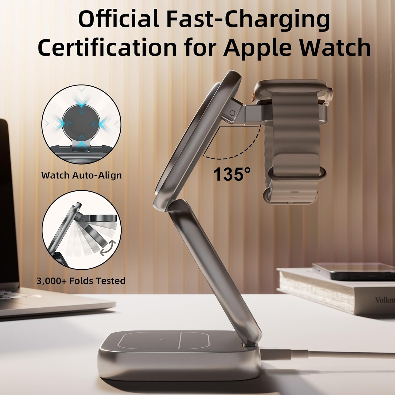 5-in-1 Wireless Charger for MagSafe, AC ISLAND Portable Travel Charging Station, 15W Max Fast Foldable Magnetic Stand, Evolved for iPhone 17/16/15/14/13 Series, Apple Watch, AirPods (with 35W Adapter)