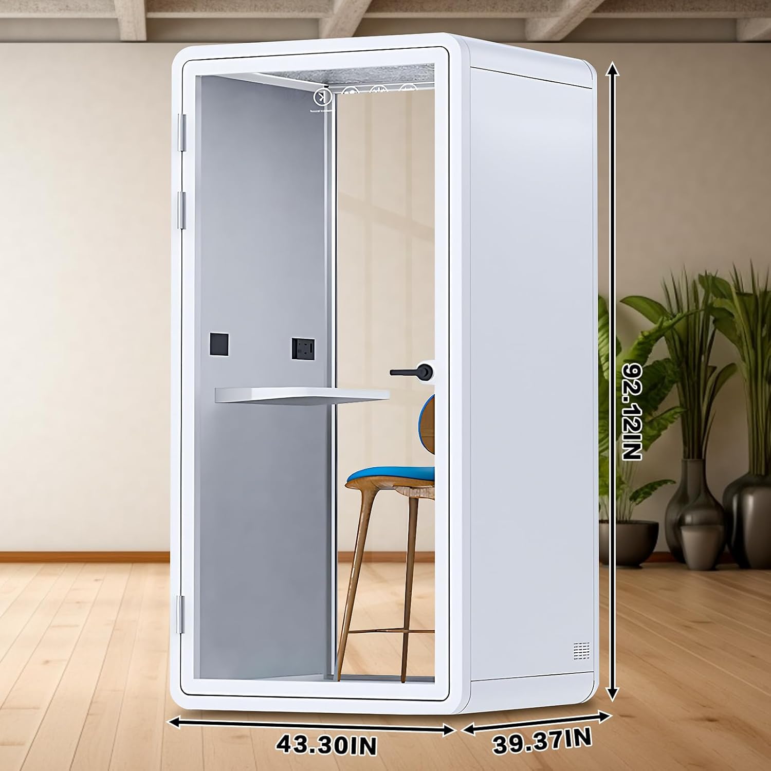 Office Sound Booth with Audio Privacy - Removable Soundproof Booth Includes White with Rounded Corners,Soundproof Room with Light,Fans, Socket for Telephone Booth,Study (43.3IN)