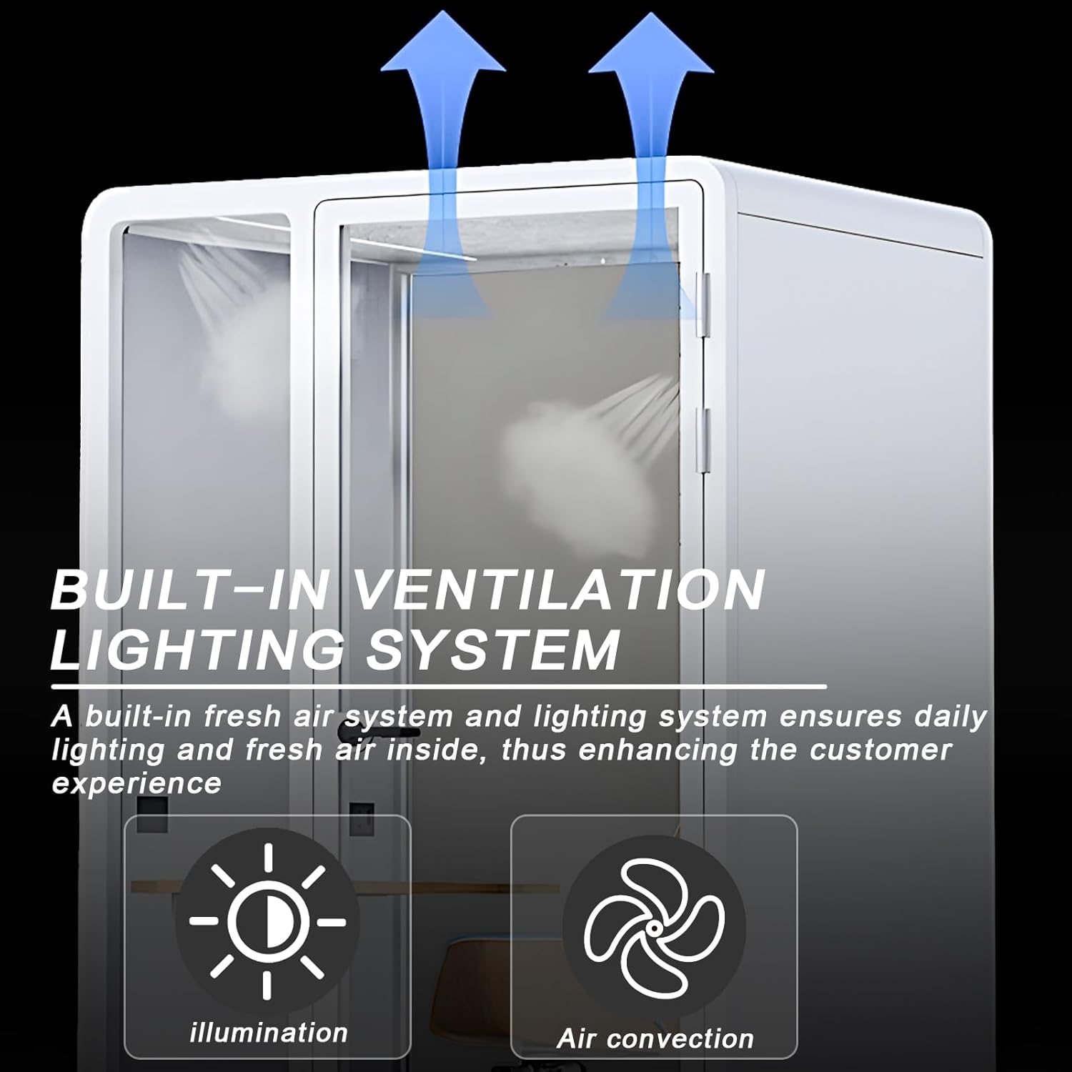 - Excellent Soundproofing: Our innovative design utilizes a variety of advanced soundproofing materials to effectively reduce noise levels, reducing noise levels by 20-30 decibels. And create an ergonomic soundproof cabin