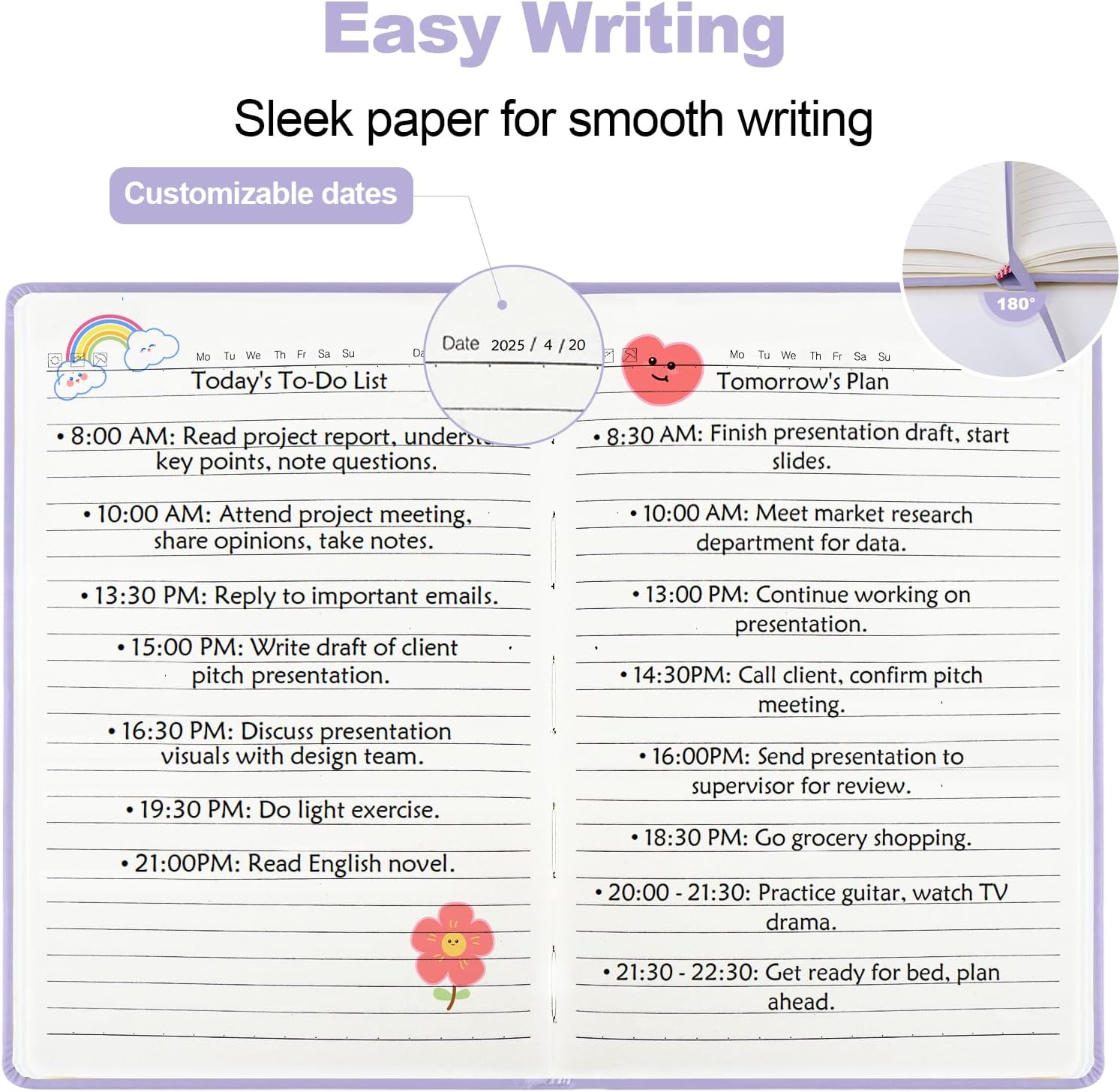 - 180° flat-lay design: The 180° flat-lay design makes writing a breeze. Every page lies flat on the table, no closing or bending. Whether you're left or right-handed, it gives a smooth writing experience, helping you capture every inspiration easily.