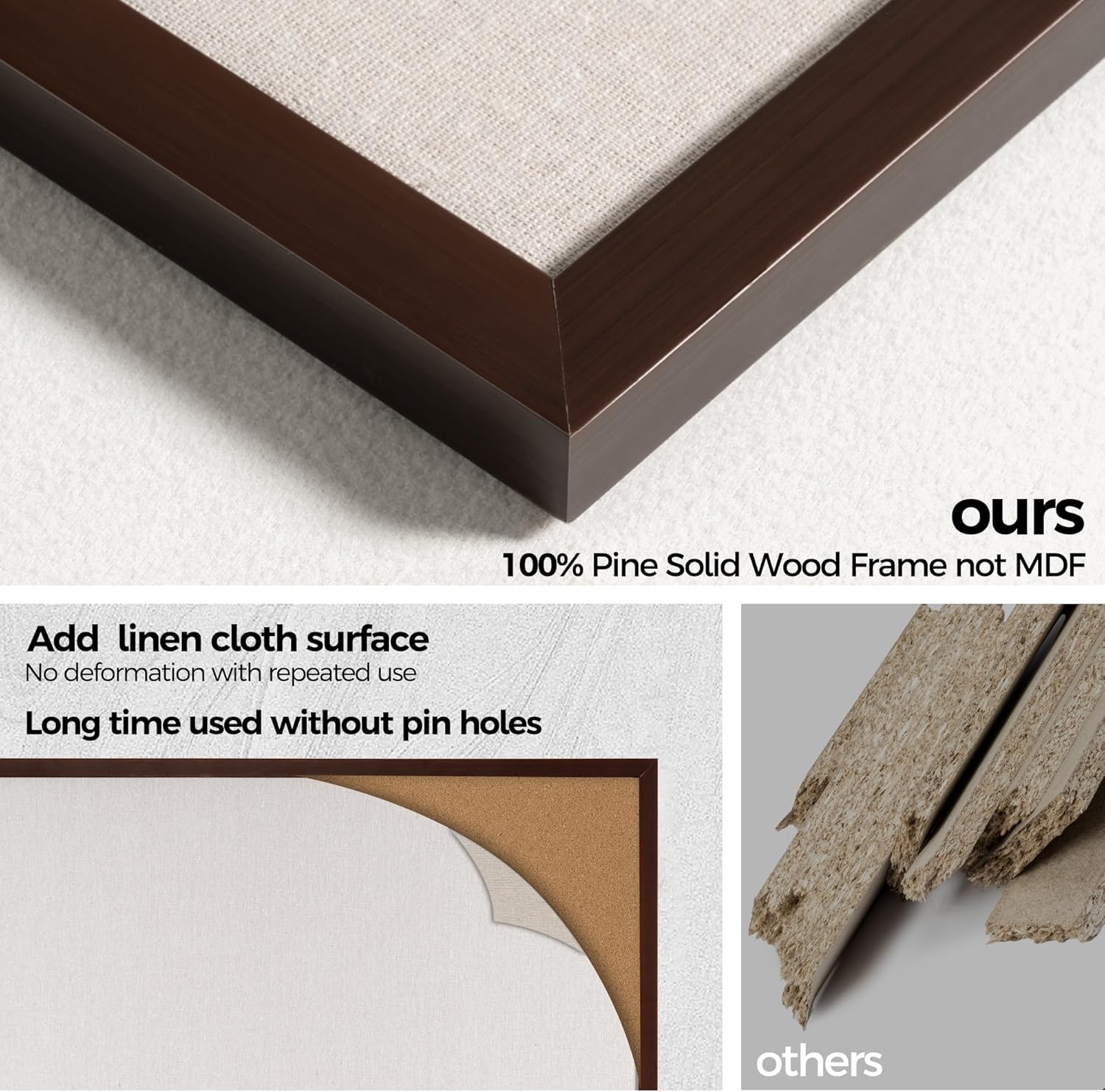 Fun Memories Cork Board Bulletin Board for Office, 20" x 30" Pine Wooden Framed Corkboard, Wall Mounted Notice Pin Board for School Home & Office, Dark Walnut