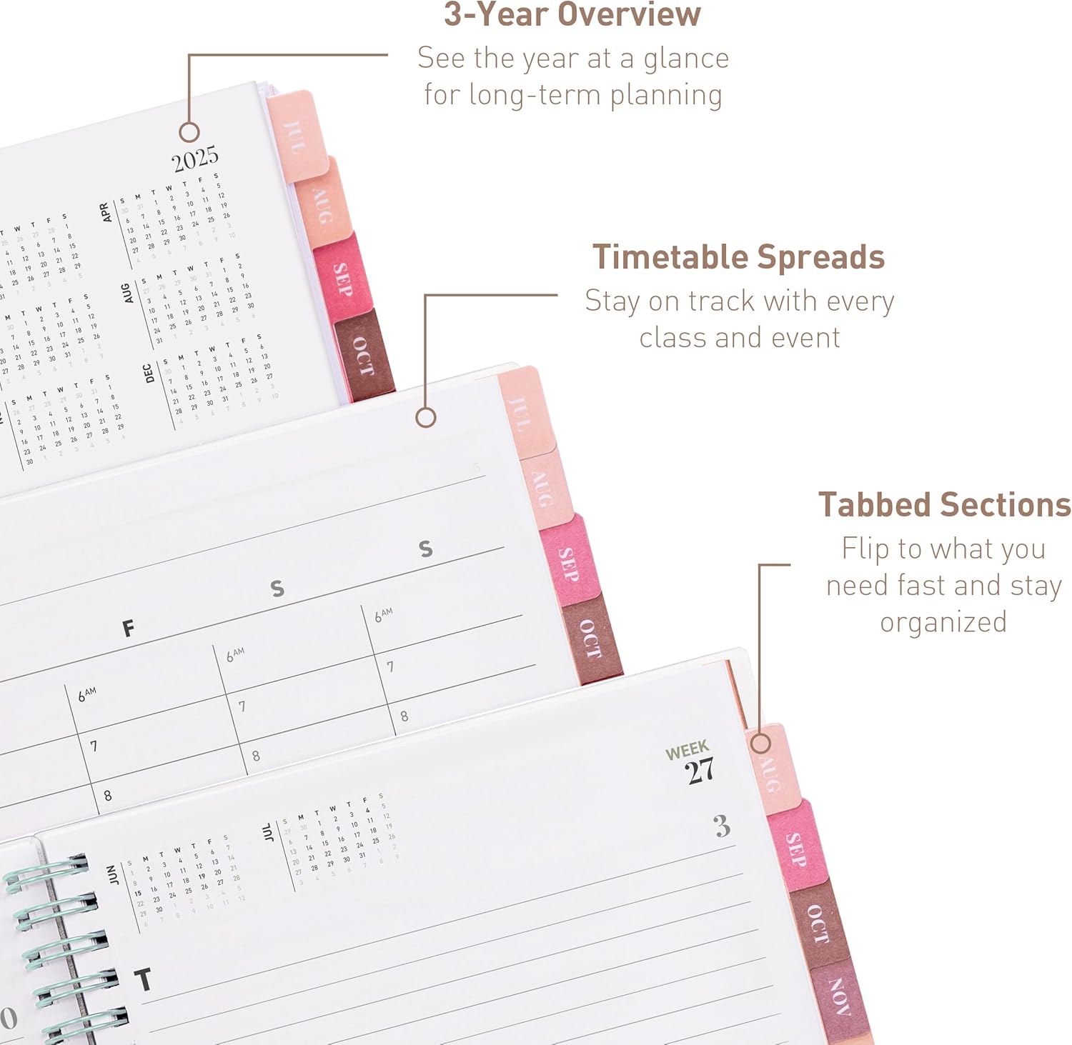 - STAY AHEAD WITH BUILT-IN EXTRAS: Never miss a milestone again. This sleek calendar 2025-2026 includes U.S. holidays, a full 3-year overview, and forward-looking weekly layouts that preview the next month. A reliable 2025 planner that keeps your future visible, from family vacations to project deadlines. Feel the peace of knowing everything’s under control.