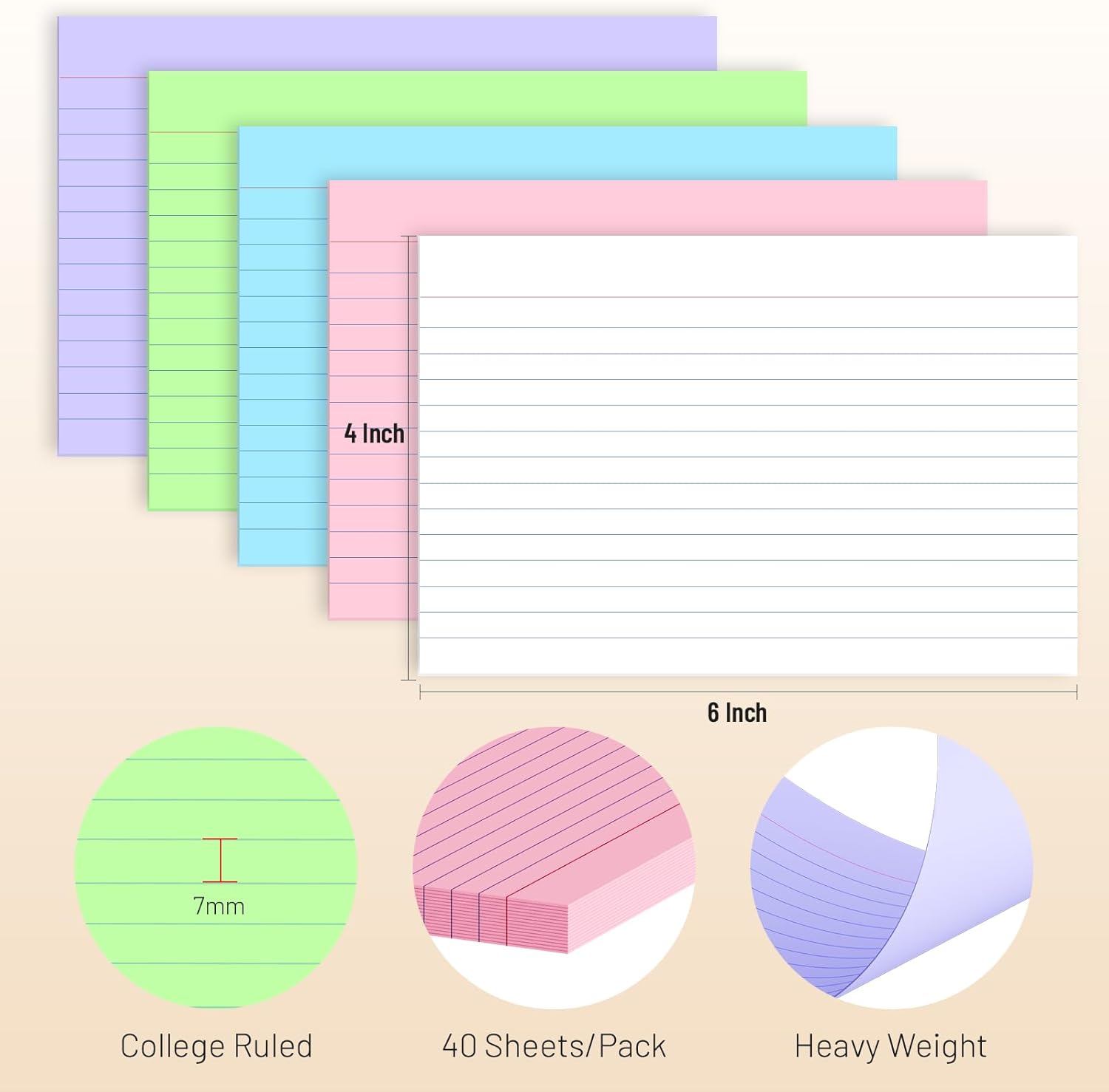 - [Bulk Value Pack & Organization Efficiency] Get 5 packs of 40 sheets each (200 total) colored ruled index cards. Thick paper resists bleeding and curling, ideal for highlighters, pens, and markers