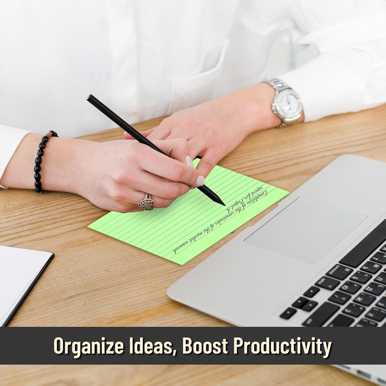 - [Bulk Value Pack & Organization Efficiency] Get 5 packs of 40 sheets each (200 total) green ruled index cards. Thick paper resists bleeding and curling, ideal for highlighters, pens, and markers