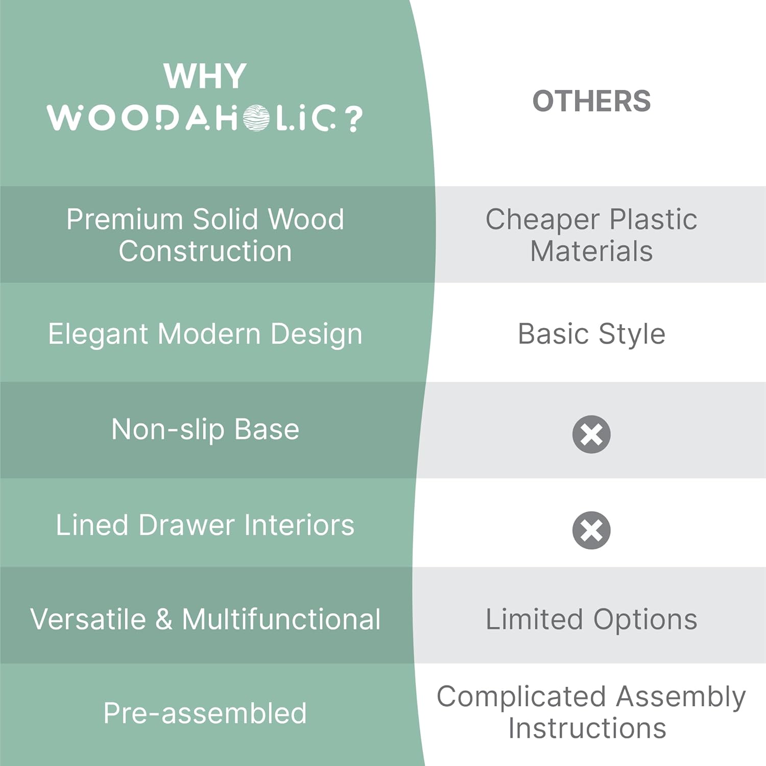 - Woodaholic Brand Promise - At Woodaholic, we bring timeless beauty and thoughtful functionality to your home with quality-crafted solutions that last a lifetime.