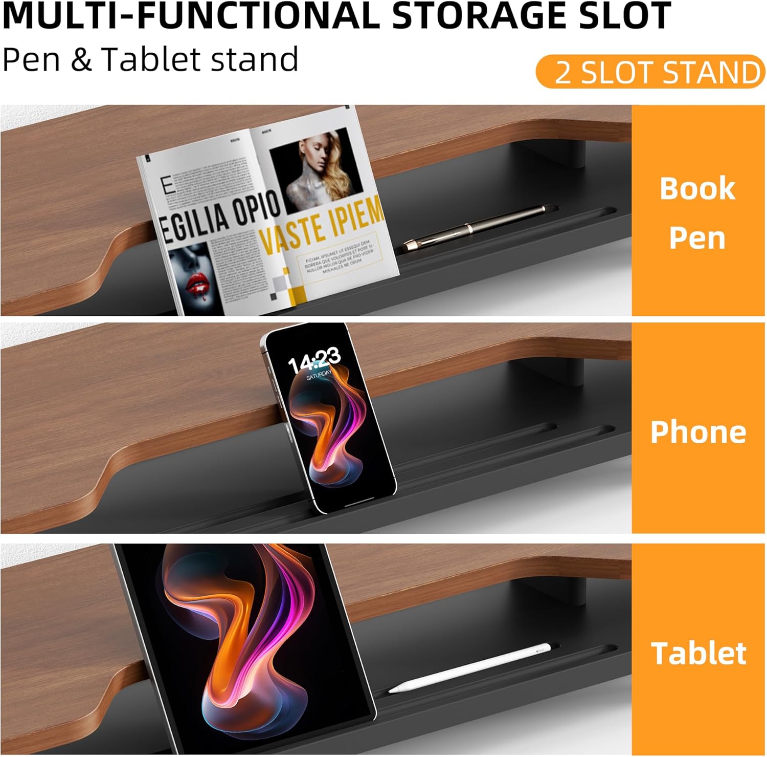 - Multi-functional Slots:There are multi - functional storage slots on the riser. You can put small things like your mobile phone, tablet, or pens in these slots. They keep your small items organized and easy to reach. This way, your desktop stays tidy, and you can find what you need quickly, making your work and study more convenient.