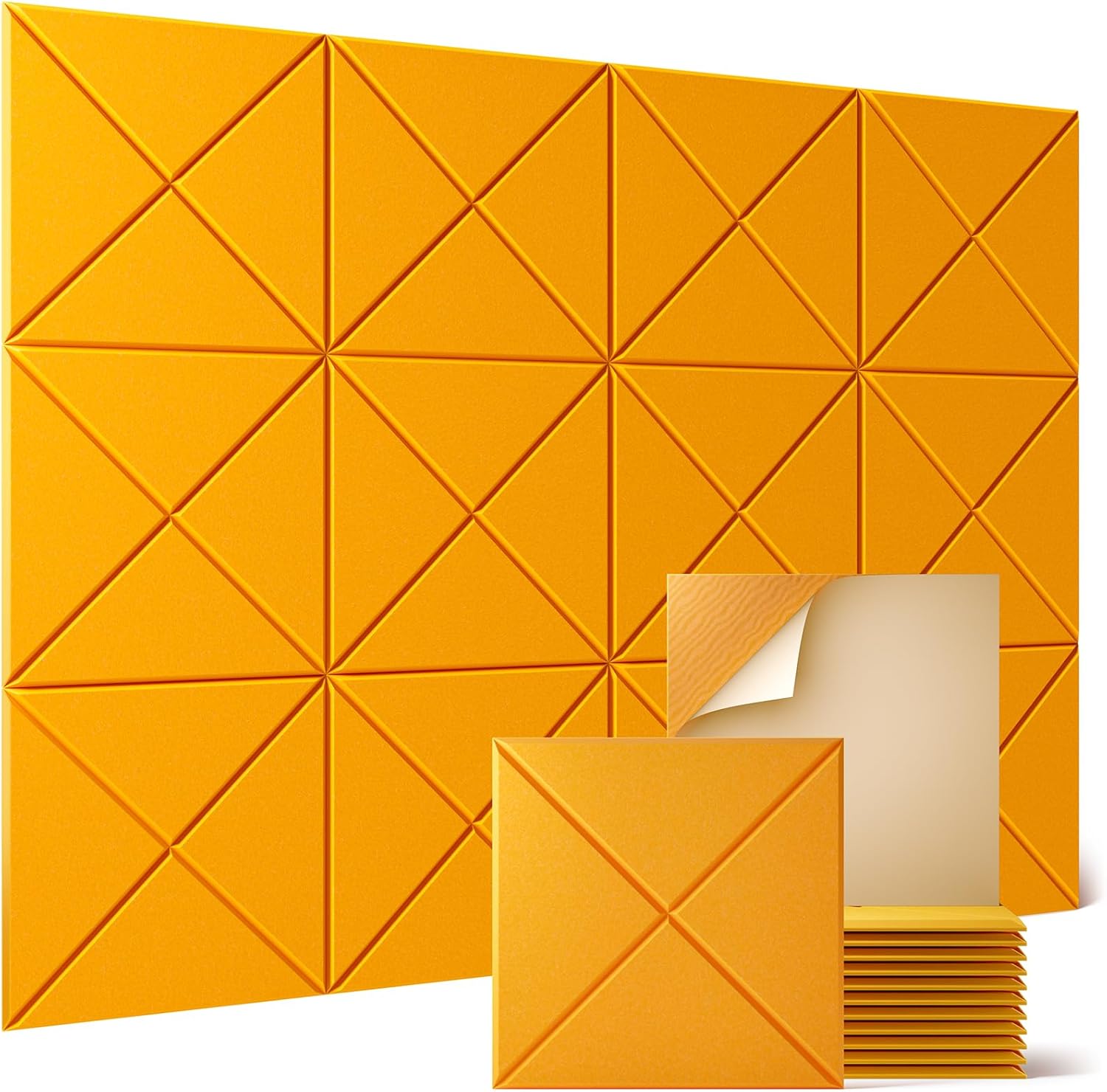 Sonicism 12 Pack X-Lined Acoustic Panels with Self-Adhesive, 12"X 12"X 0.4" Sound Proof Foam Panels, Decorative Soundproof Wall Panels, Sound Absorbing Tile for Home & Offices, Orange Yellow