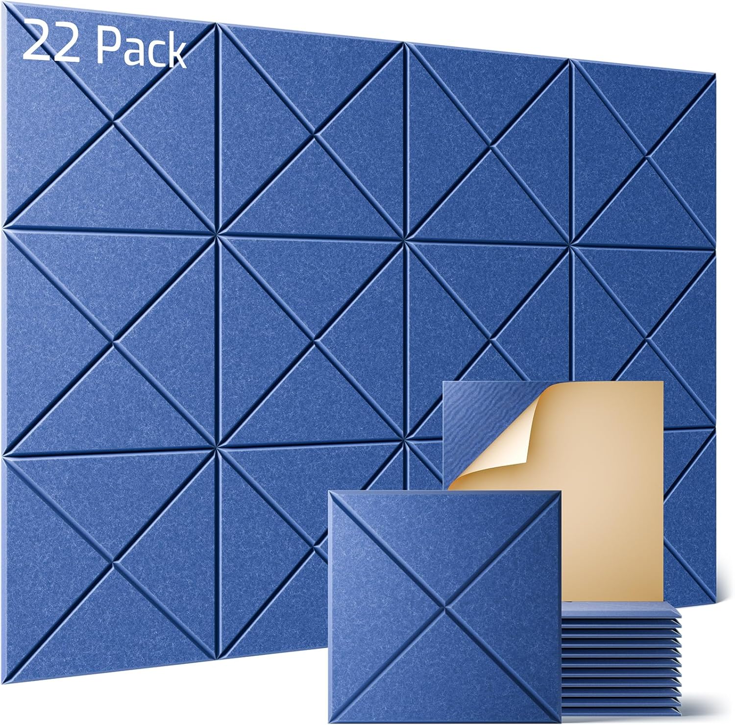 Sonicism 22 Pack X-Lined Acoustic Panels with Self-Adhesive, 12"X 12"X 0.4" Sound Proof Foam Panels, Decorative Soundproof Wall Panels, Sound Absorbing Tile for Home & Offices, Cerulean Blue