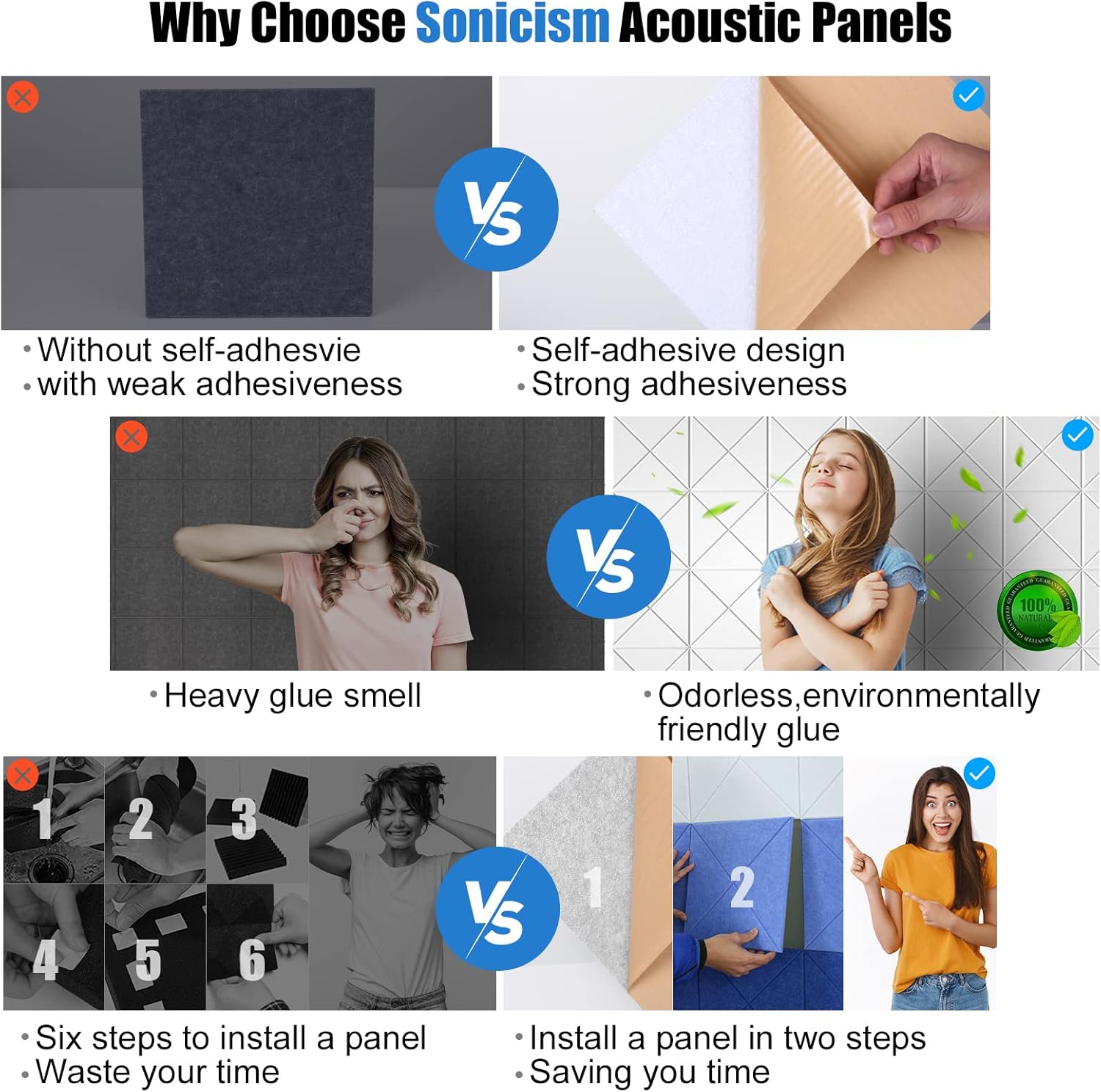 - [Quality & Service Guarantee]: Deeply rooted in sound dampening panels industry for years, Sonicism places great emphasis on product quality and offer prompt sales service. Don't hesitate to contact us anytime with sound proof panels questions. Your satisfaction is our priority