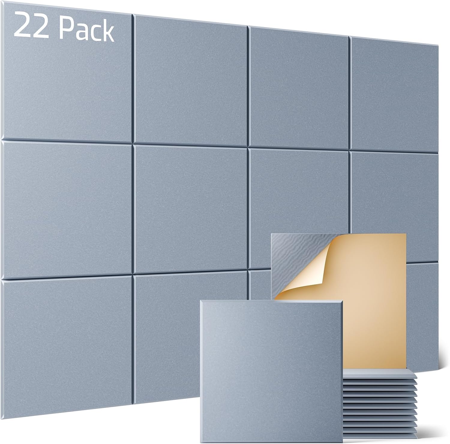 Sonicism 22 Pack Acoustic Wall Panels with Self-Adhesive, 12" X 12" X 0.4" Sound Proof Foam Panels, Decorative Soundproof Wall Panels, Sound Proof Absorbing Tiles for Home & Offices, Smoky Gray