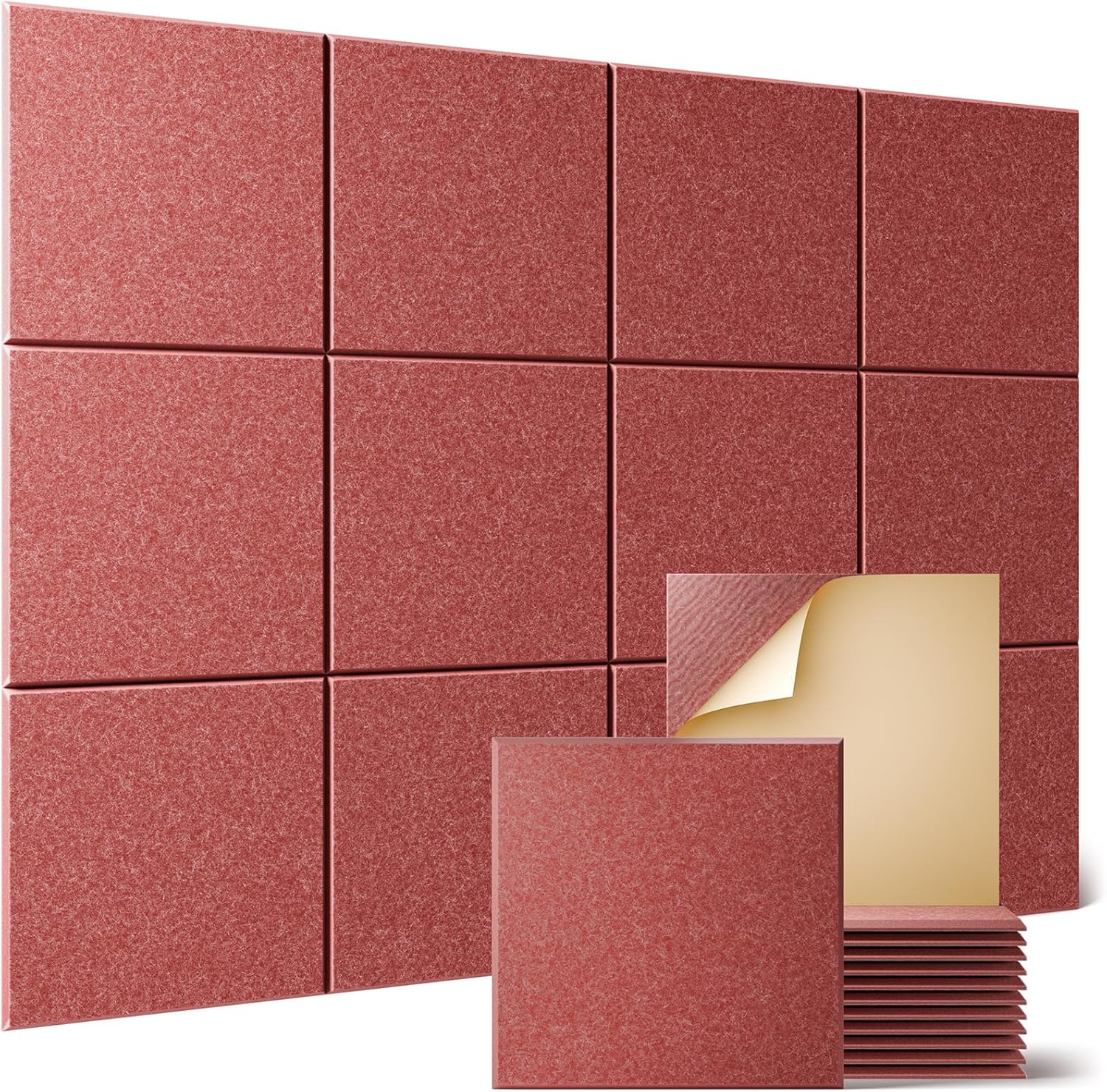Sonicism 12 Pack Acoustic Wall Panels with Self-Adhesive, 12" X 12" X 0.4" Sound Proof Foam Panels, Decorative Soundproof Wall Panels, Sound Proof Absorbing Tiles for Home & Offices, Red