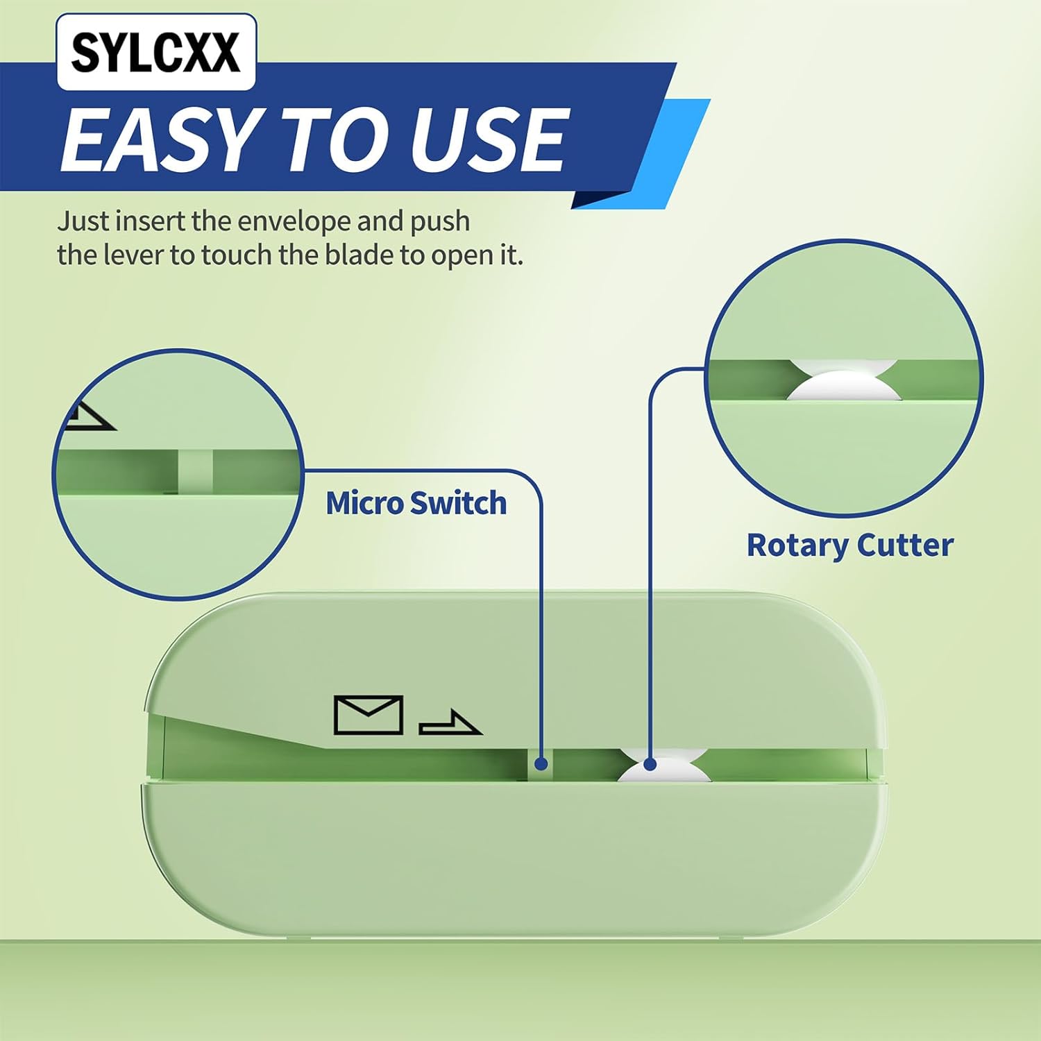 Rechargeable Electric Letter Opener - Letter Openers Envelope Slitter, Electric Envelope Opener, Mail Opener, Universal Envelope Efficient Letter Opener Tool for Office, Home (Saga Green)