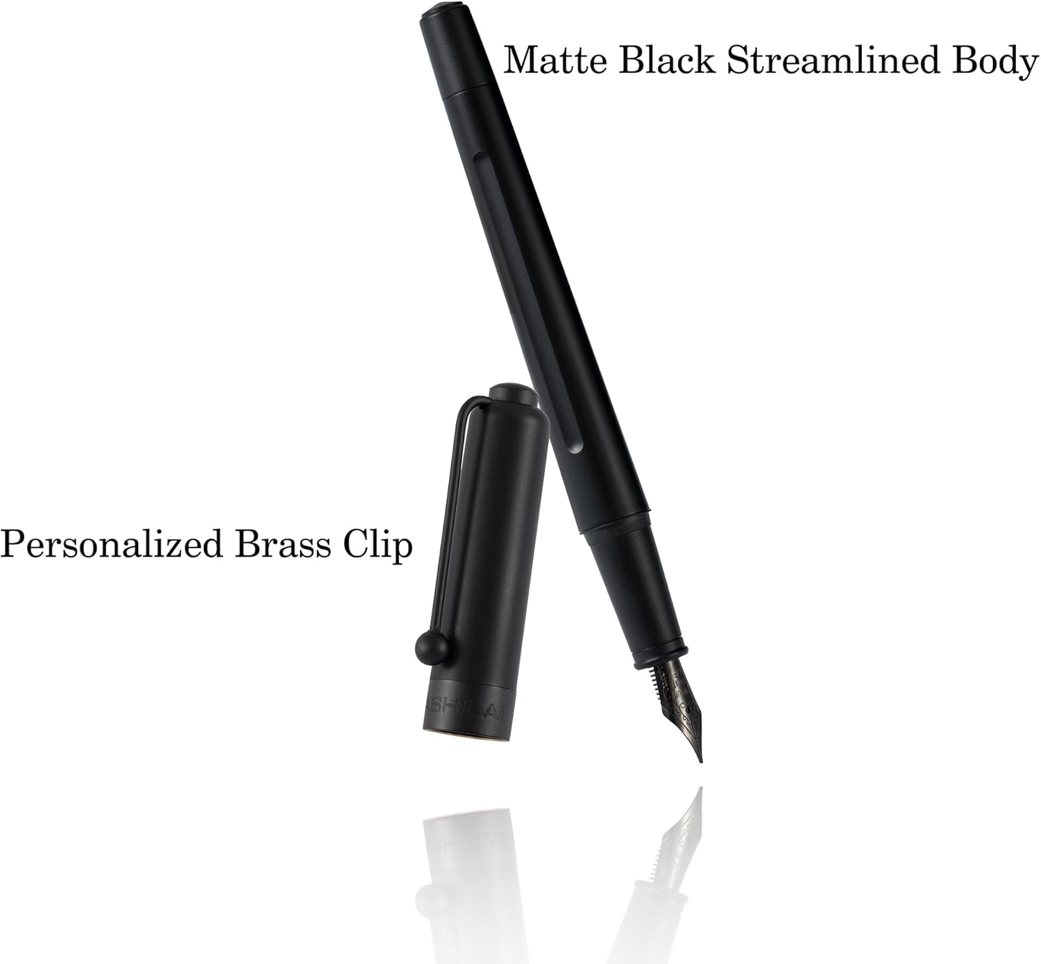 - Matte Black Streamlined Body Design: This fountain pen features a matte black body and a personalized brass clip, which is simple, elegant, and modern. When you use it, it can instantly enhance your taste and style. More importantly, its streamlined design is not only aesthetically pleasing, but also ergonomic, providing you with a more comfortable grip experience.