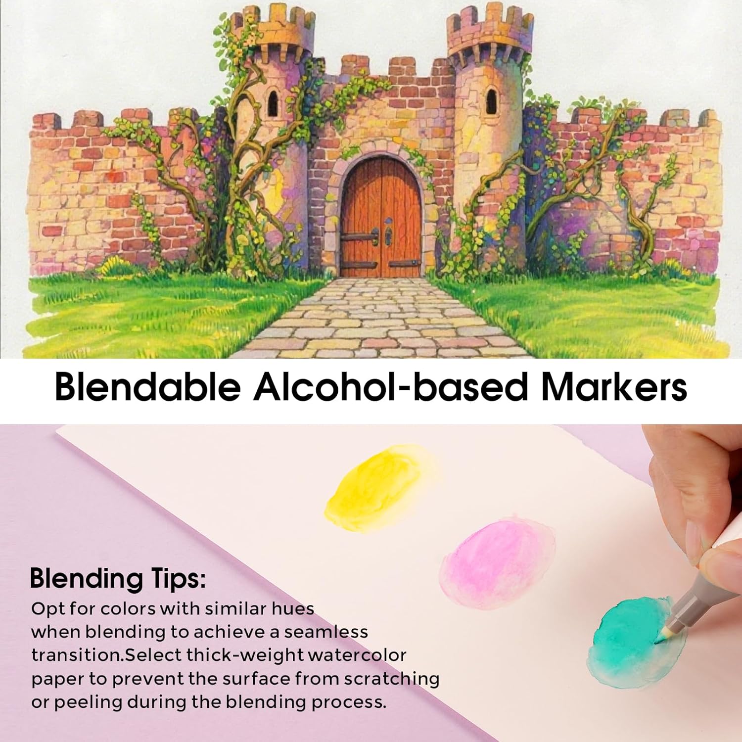 - Vibrant Blendable Colors: Unleash your creativity with 100 colors brush tip alcohol markers featuring ultra-smooth alcohol-based ink that blends seamlessly. Perfect for adult coloring books, these no-bleeding coloring markers deliver rich, fade-resistant hues for professional illustrations, manga art, or casual sketching.