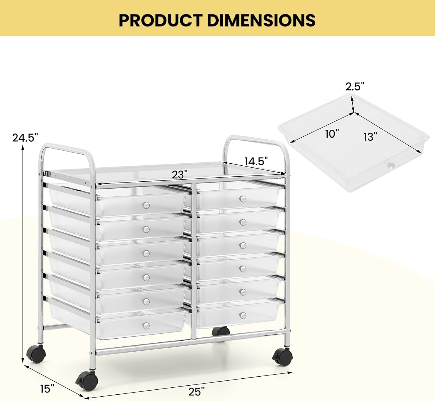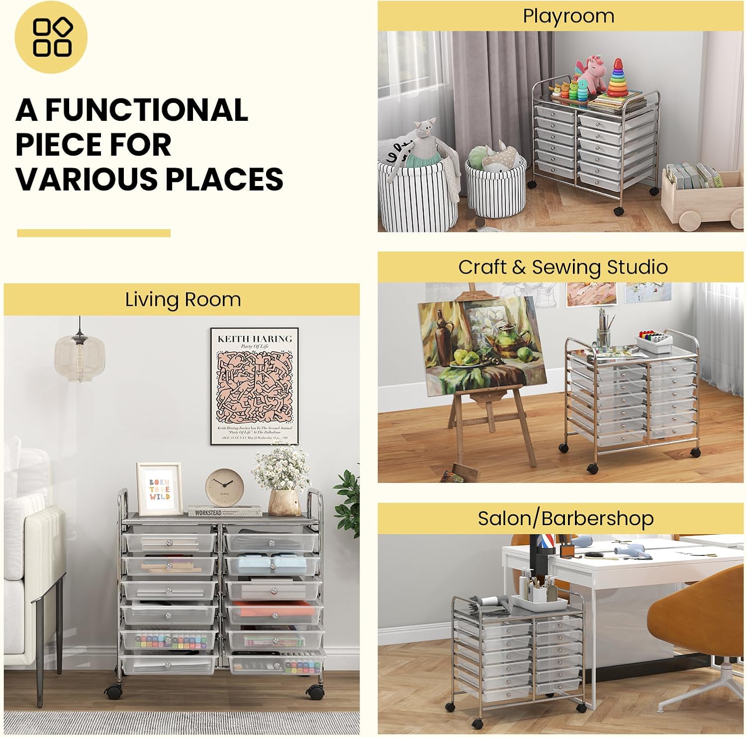Giantex 12 Drawers Rolling Cart, Mobile Storage Drawer Cart, Classroom Organizer Cart for Office School Supplies Tools Scrapbook Paper Craft Small Printer, Utility Cart on Wheels, Clear