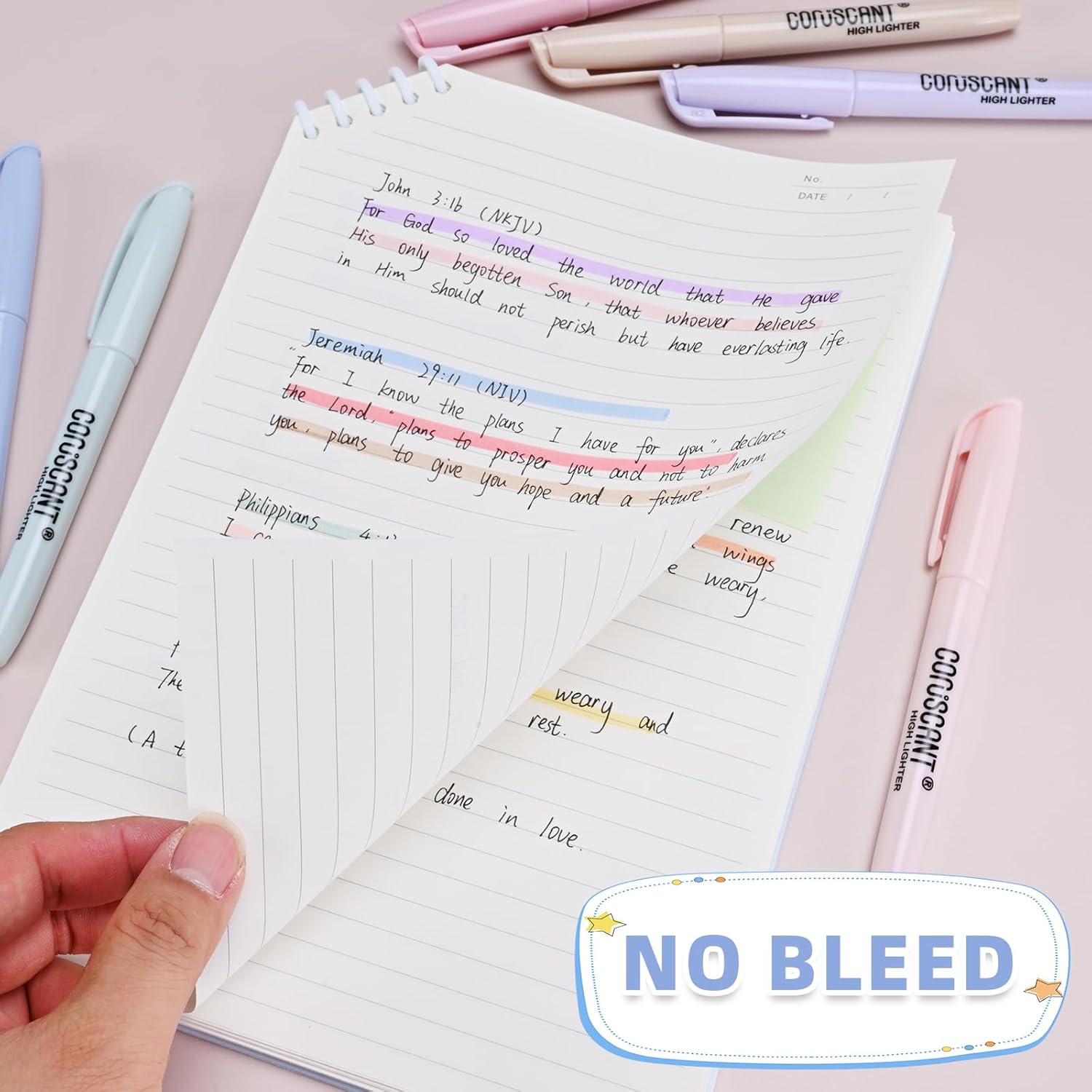 coruscant Pastel Highlighters Set, Assorted Colors Chisel Tip Cute Bible Highlighters, No Bleed Dry Quickly, for Journal Bible Study, Perfect for thin paper, School Office Supplies, 8 Pack