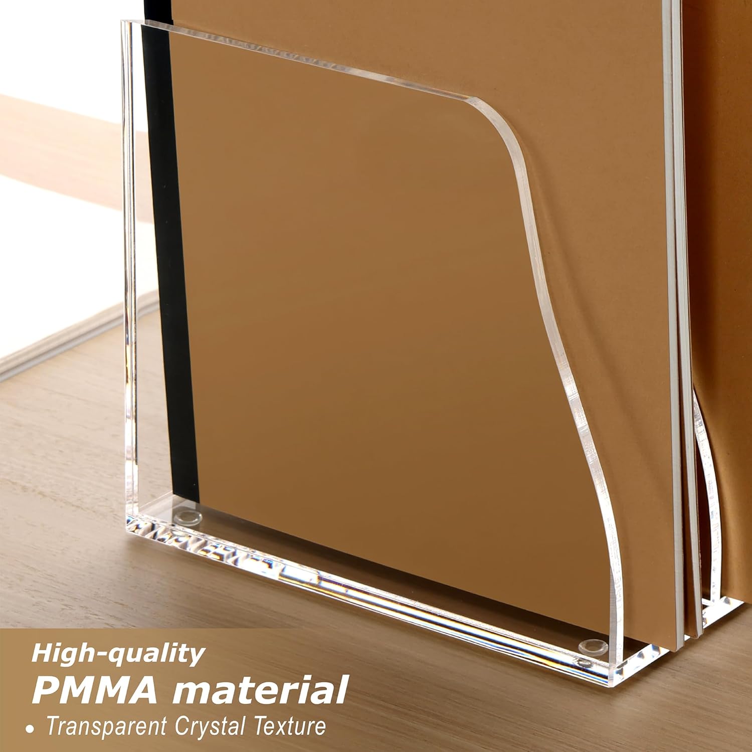 - Sturdy and Durable File Organising Shelf: Made of high quality 5mm thickness acrylic material, hand polished and sanded with smooth edges and rubber anti-slip pads on the bottom to make it more stable on the desktop and not easy to fall off!
