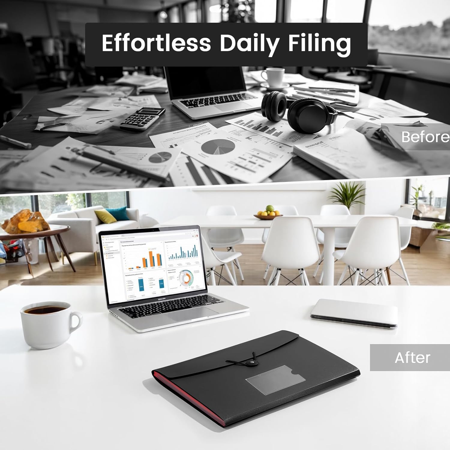 - Elastic Buckle Design: The expanding file folder features a flap with elastic cord closure, protecting documents safe and firmly in place during transport