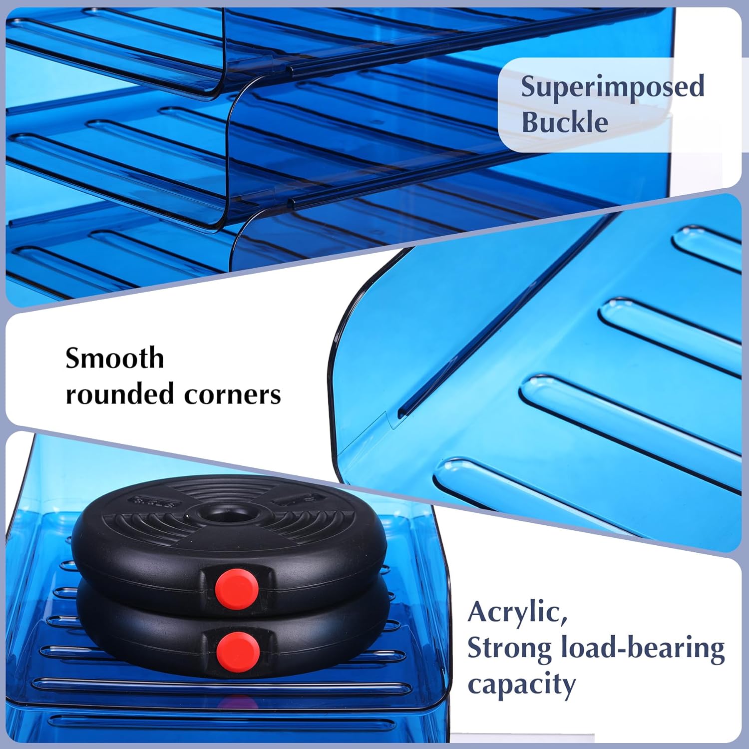- Stylish and Sturdy Office Organizer - Our paper letter tray is made of thick premium PET material, which features durable and sturdy to use for a long time. The blue office storage looks very clean and sleek, and it can provide a clean/organized look of your home and office desk for you