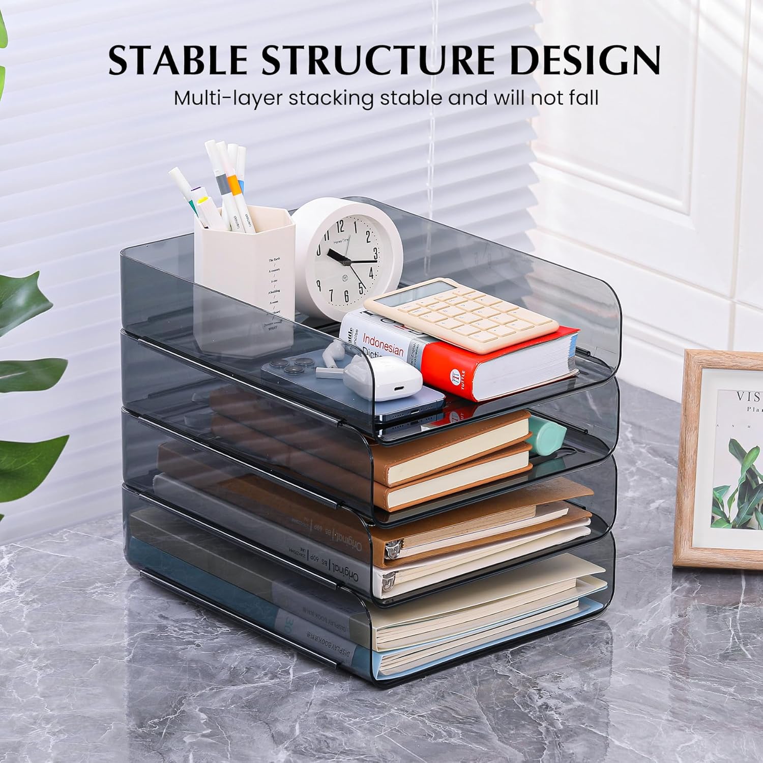 - Multiple Functional - Keep your workspace tidy and professional with these stackable paper organizers. This office organizer and storage is great for school, home and office to organize textbooks, notebooks, teachers' and students' files, documents, magazines, stationery, printer paper, etc