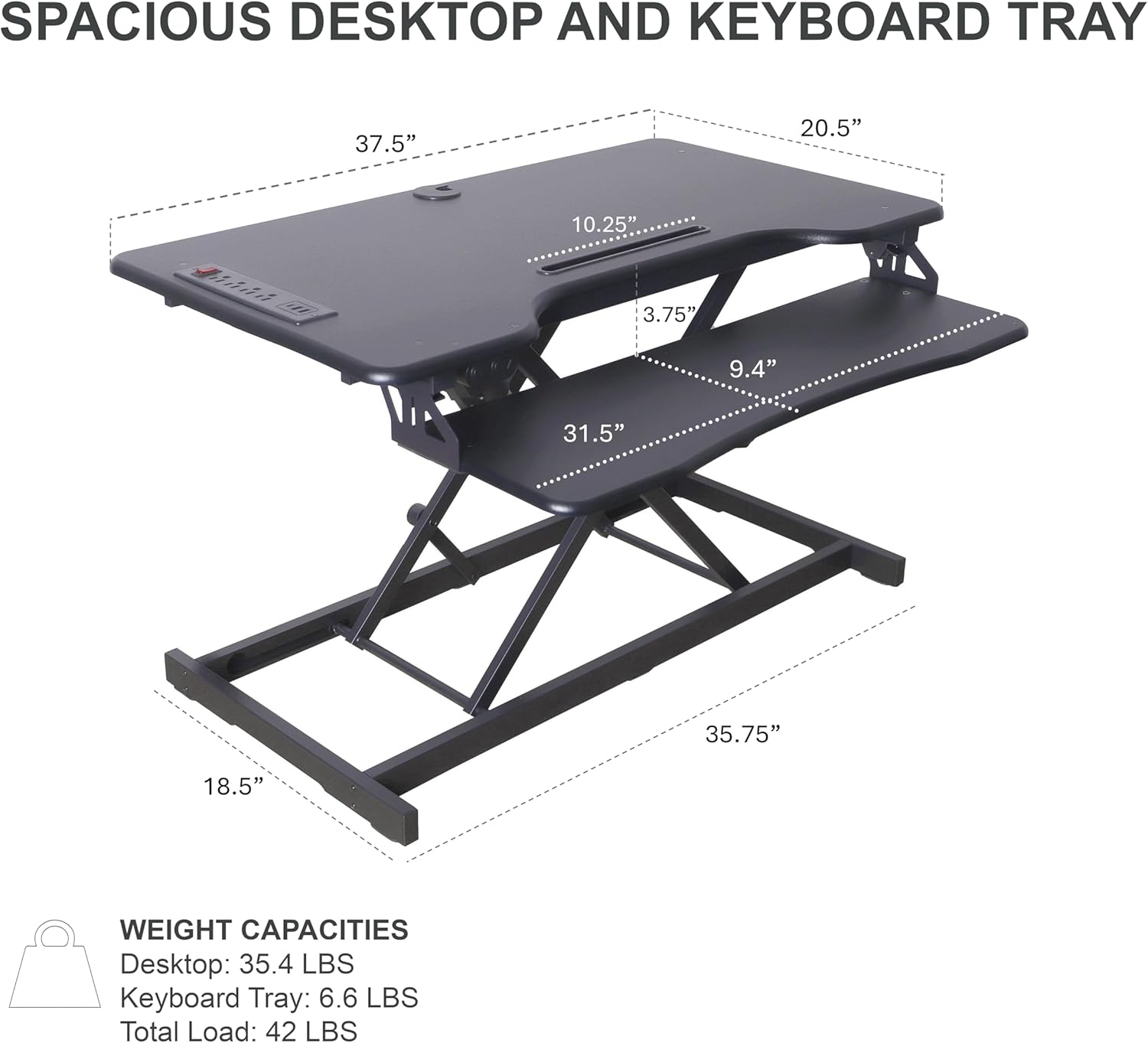 - LARGE WORK SURFACE: 37.4" X 15.75" work surface with electric lift system that raises up to 33 lbs