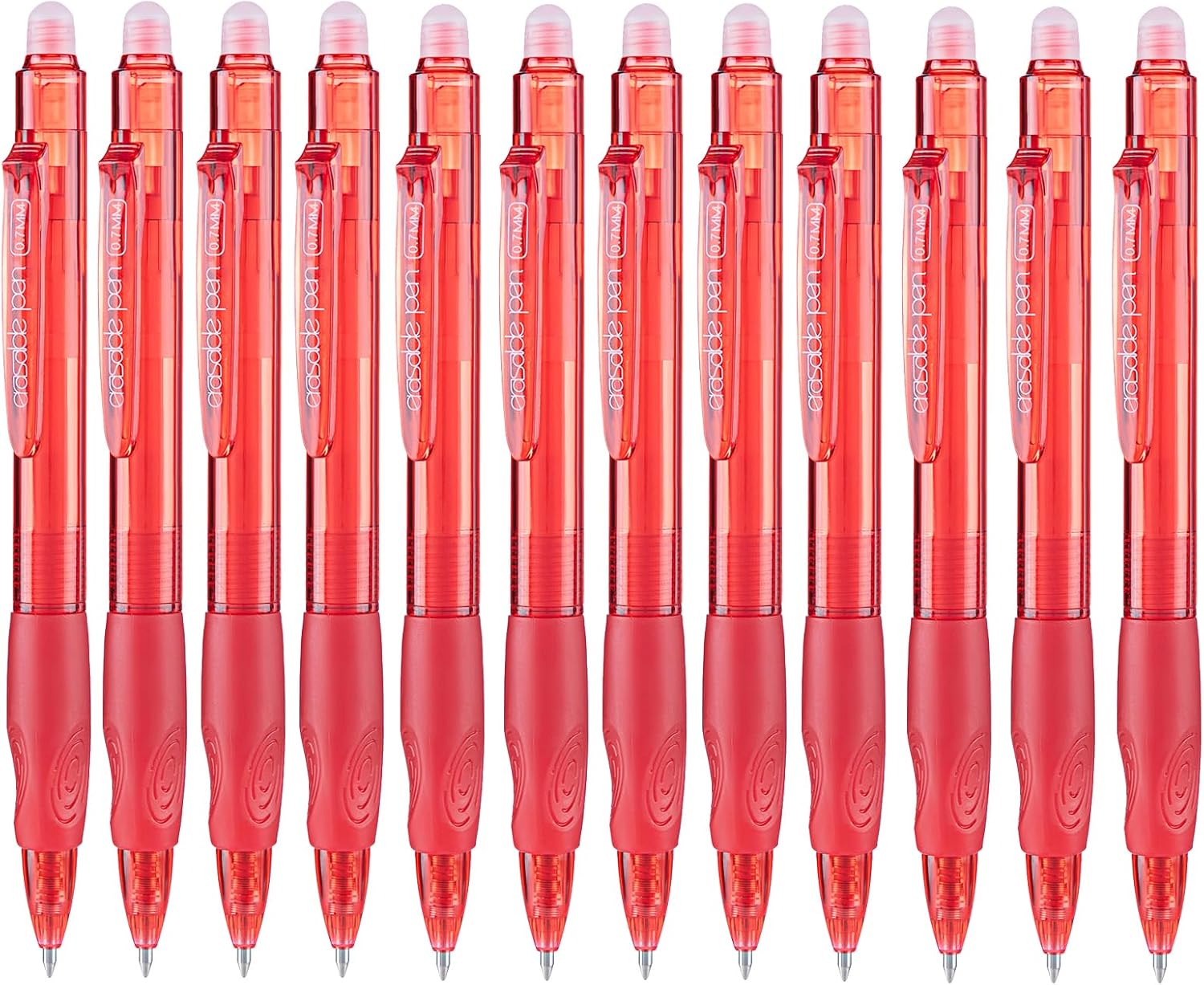 Aozora Erasable Pens Click Fine Point 0.7 mm Retractable Erasable Gel Pens for Completing Sudoku and Crossword Puzzles 12 Pack (Red)