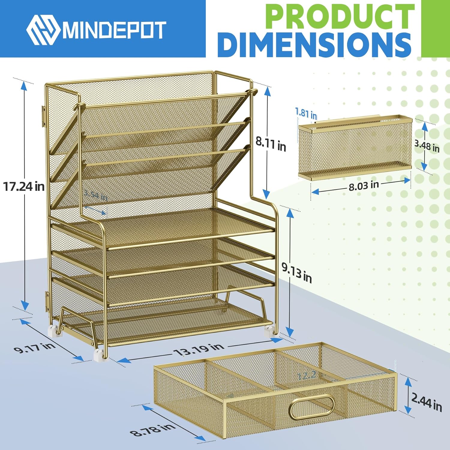 - Color : Gold, with Drawer & Pen Holder