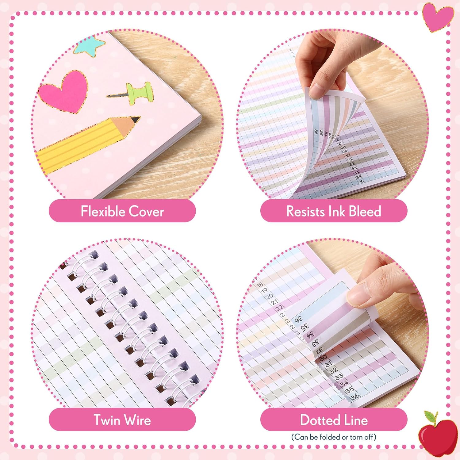 Fuyoooo Teacher Record Book Teacher Grade Books 2025-2026 Spiral Bound Record Class Grade Book Office Favors Gift for Classroom Attendance Supplies Decoration Double Sided(Pastel)