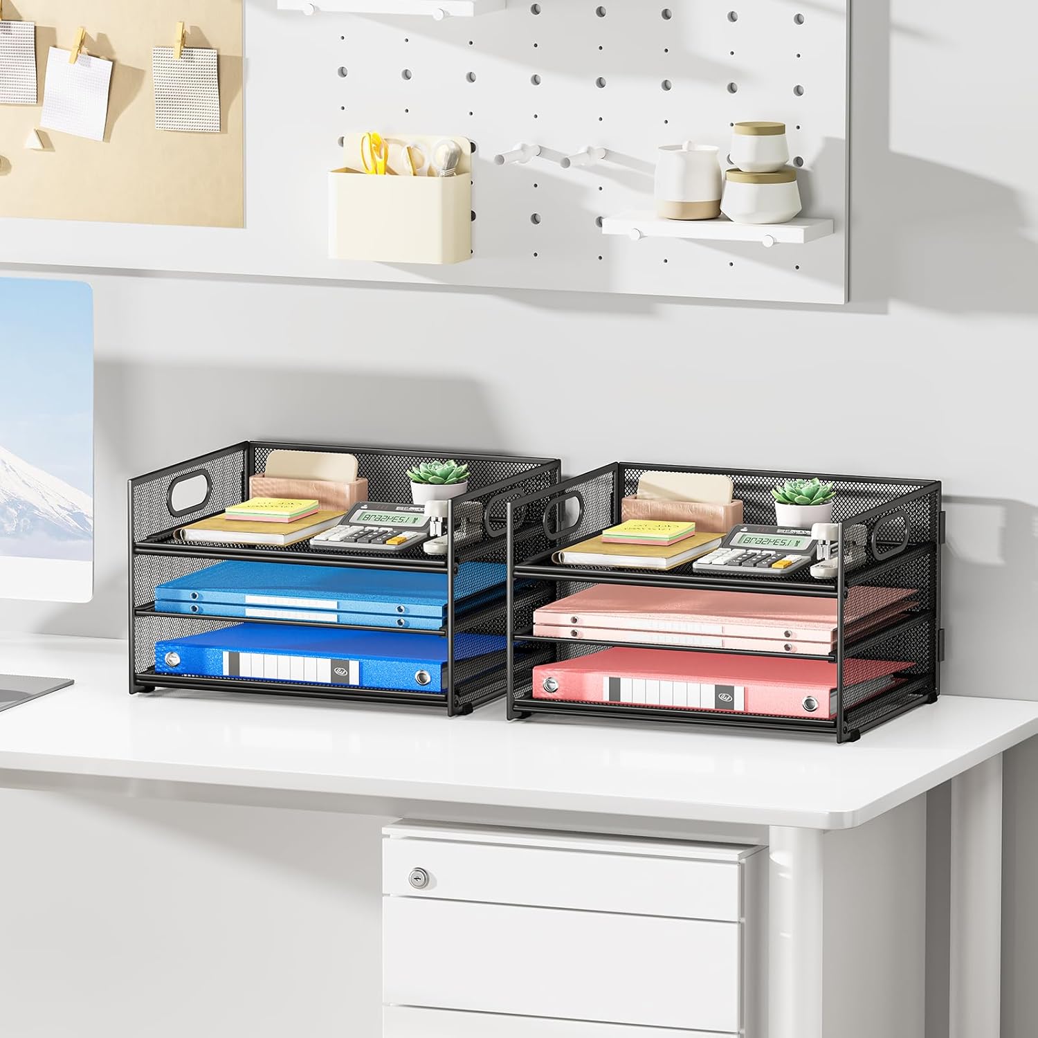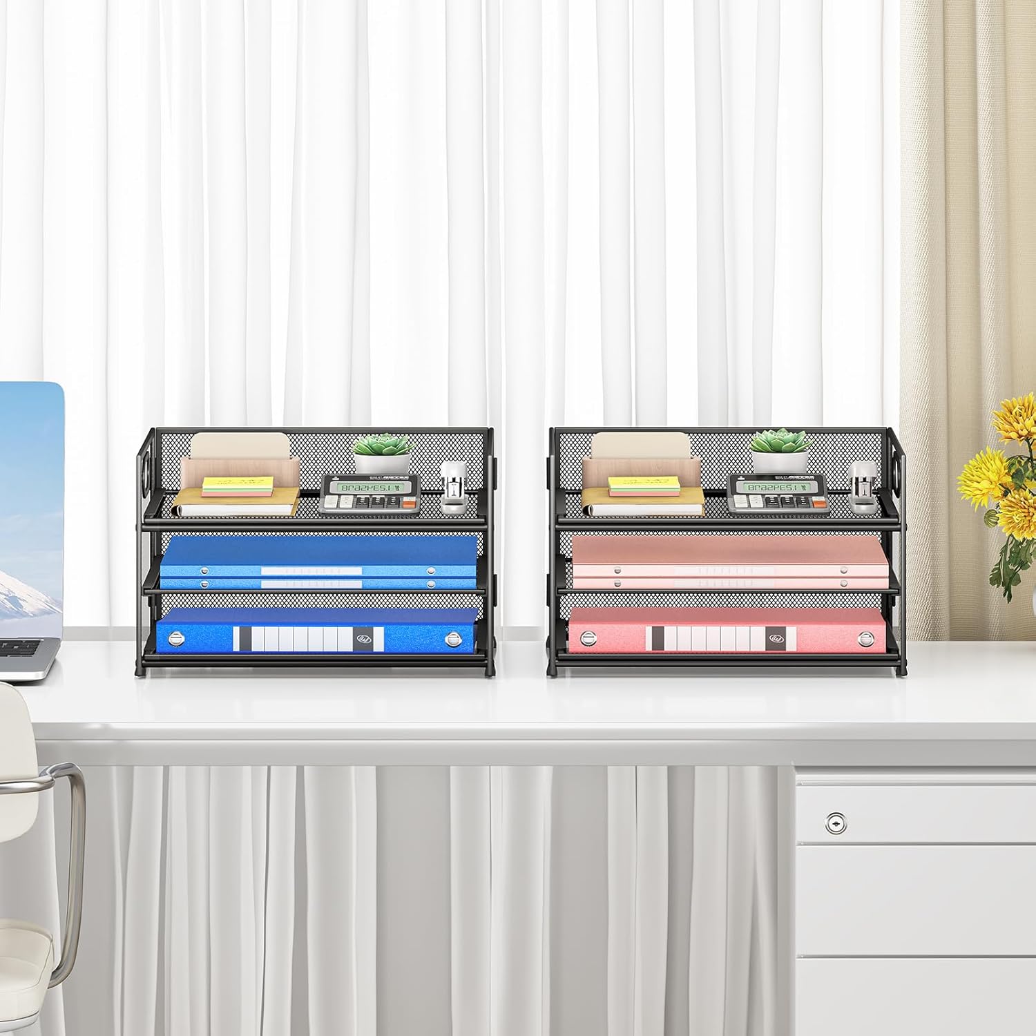 - Paper Organizer Function and Usage: The mesh desktop file organizer can hold various items including paper, folders, books, bills, notebooks, etc. The open design enables quick identification and access to contents, helping to declutter and organize the desk
