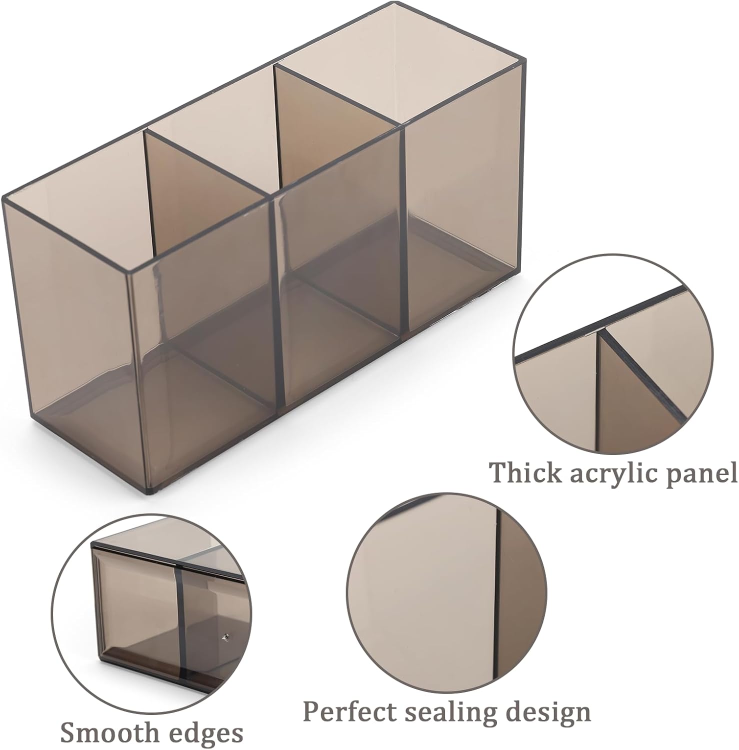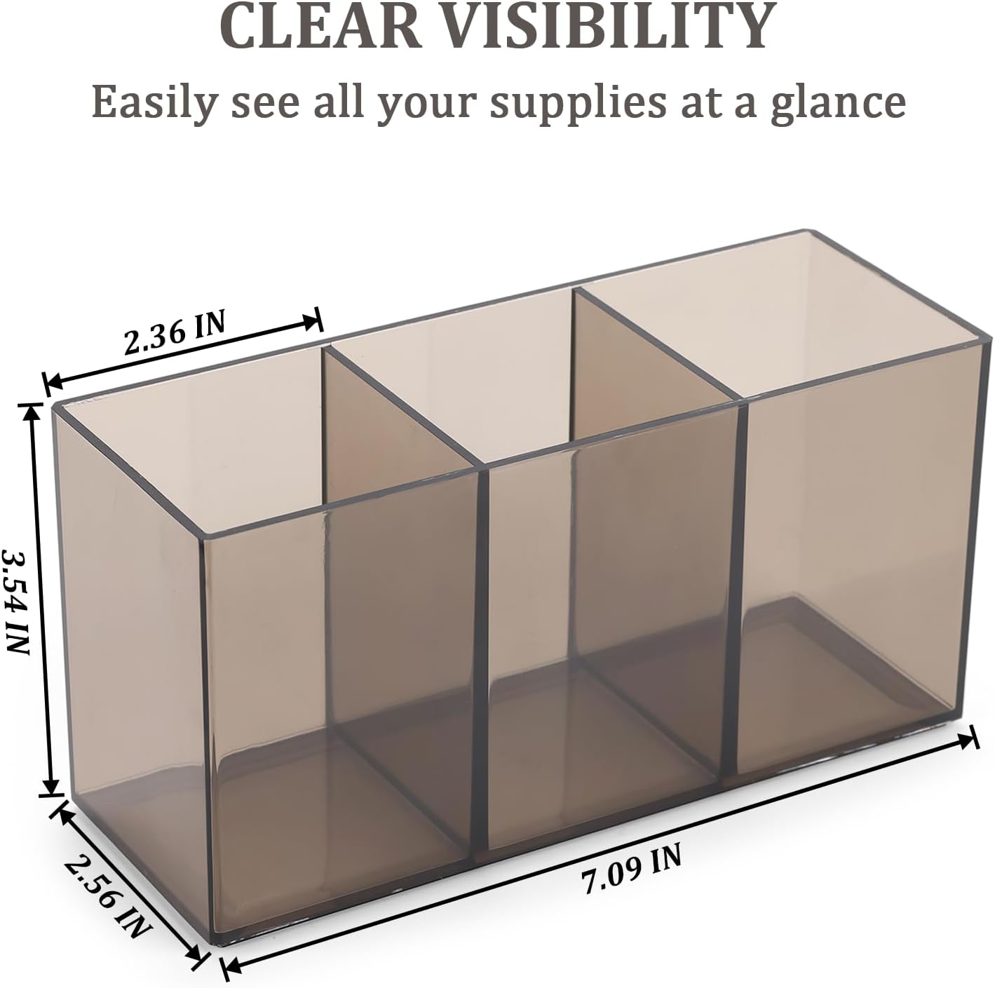 Ludato 2 Pack Pen Pencil Holder for Desk, 3 Compartments Clear Acrylic Makeup Brush Holder straw holder Storage for Office Desk Accessories