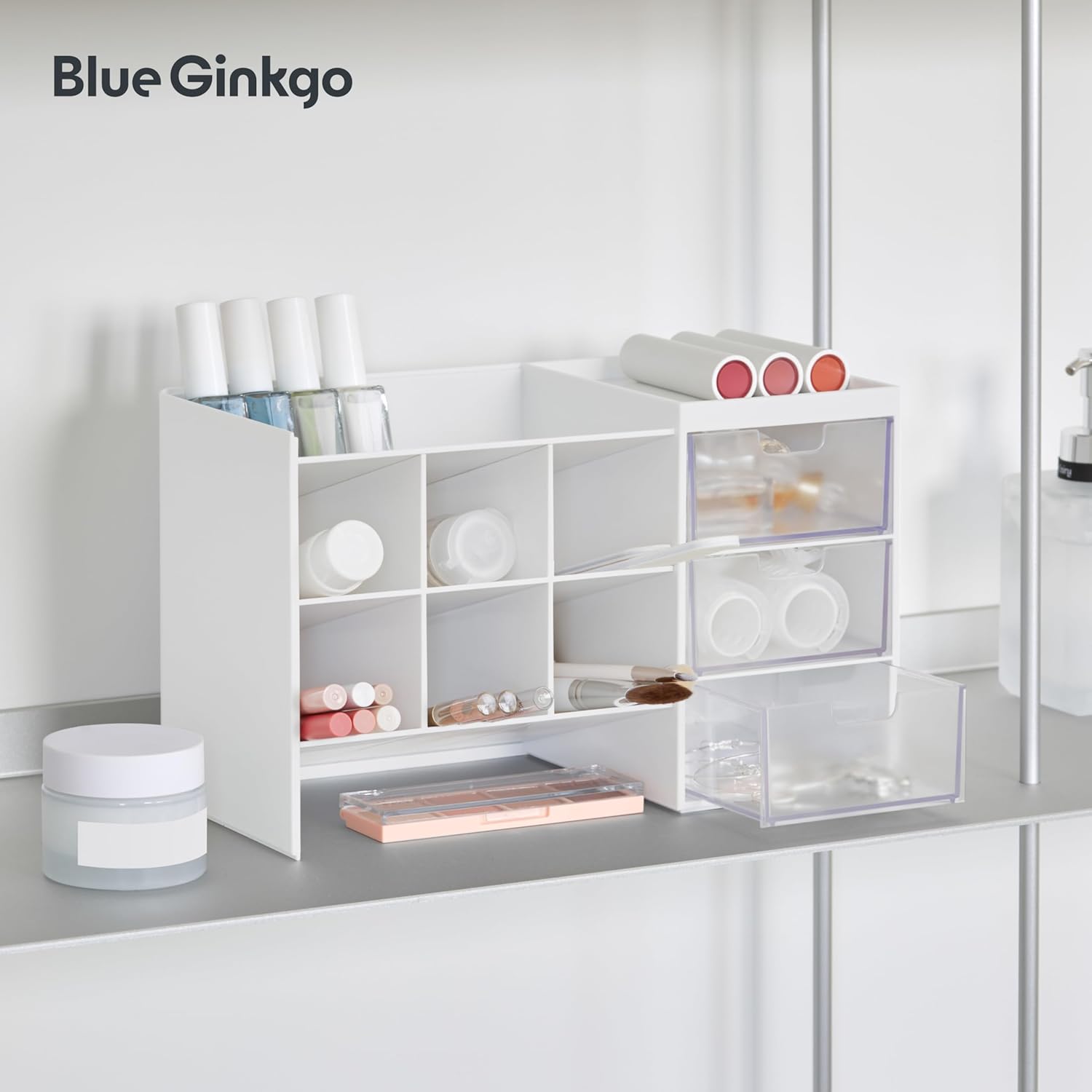 BLUE GINKGO Hive Stack Desk Organizer – Stackable Pen Holder, Stationary Organizer with Drawers - Office Storage, School Supplies, Makeup (Made in Korea, White Transperent)