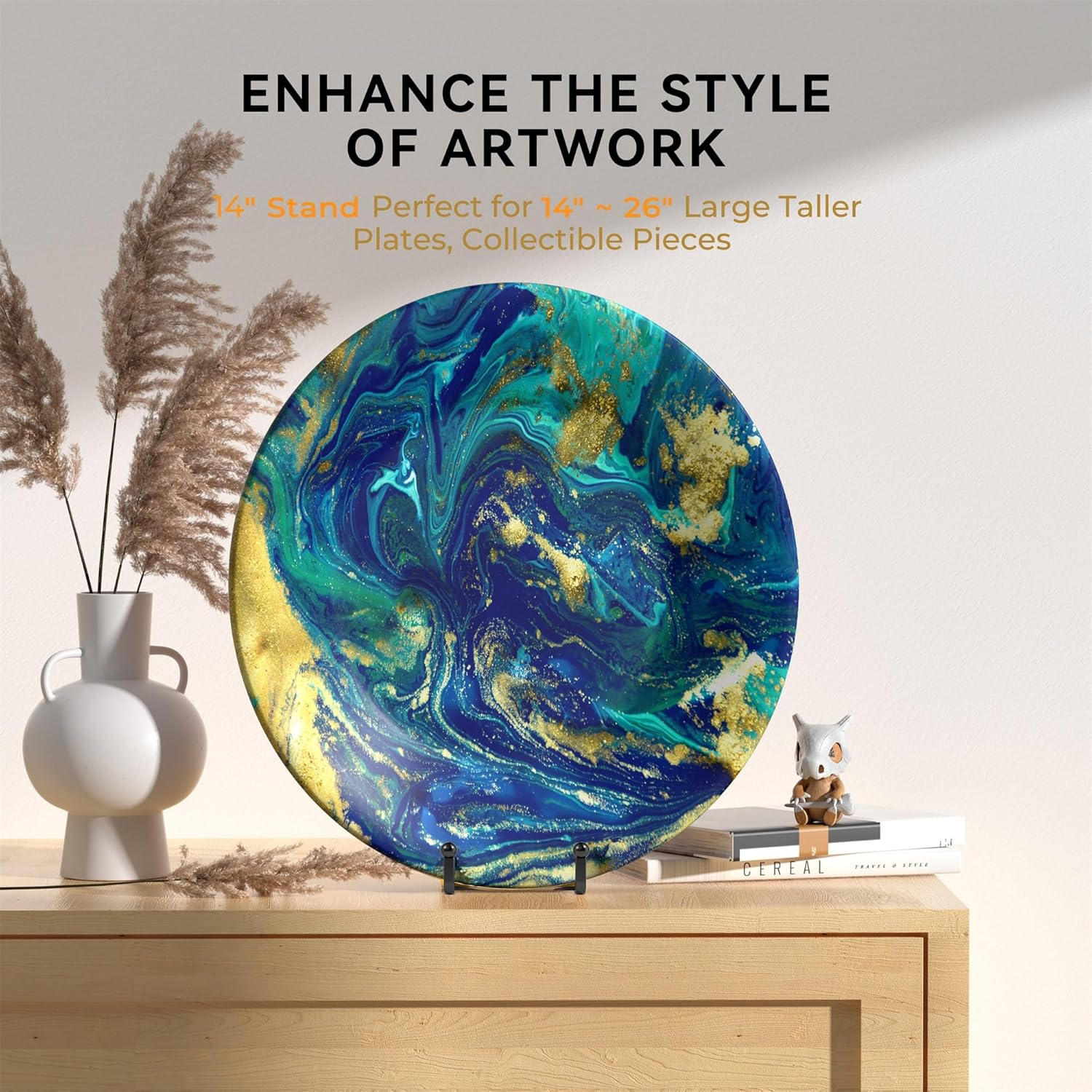 - Heavy Duty Plate Stand: Designed with a 2.75" deep lip and 10° tilt angle, this 14 inch large plate stand securely holds plates, frames, and other display items ranging from 14" to 34" in size; supports up to 20 lbs for stable display of heavier Décor.
