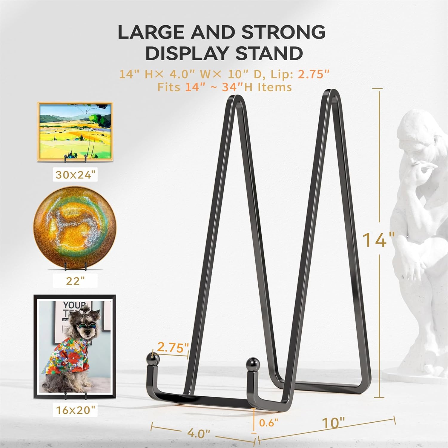 14 Inch Heavy Duty Plate Stand (2 Pack) – Metal Display Easel for Large Plates, Platters, Picture Frames, Plaques, Signs and Posters