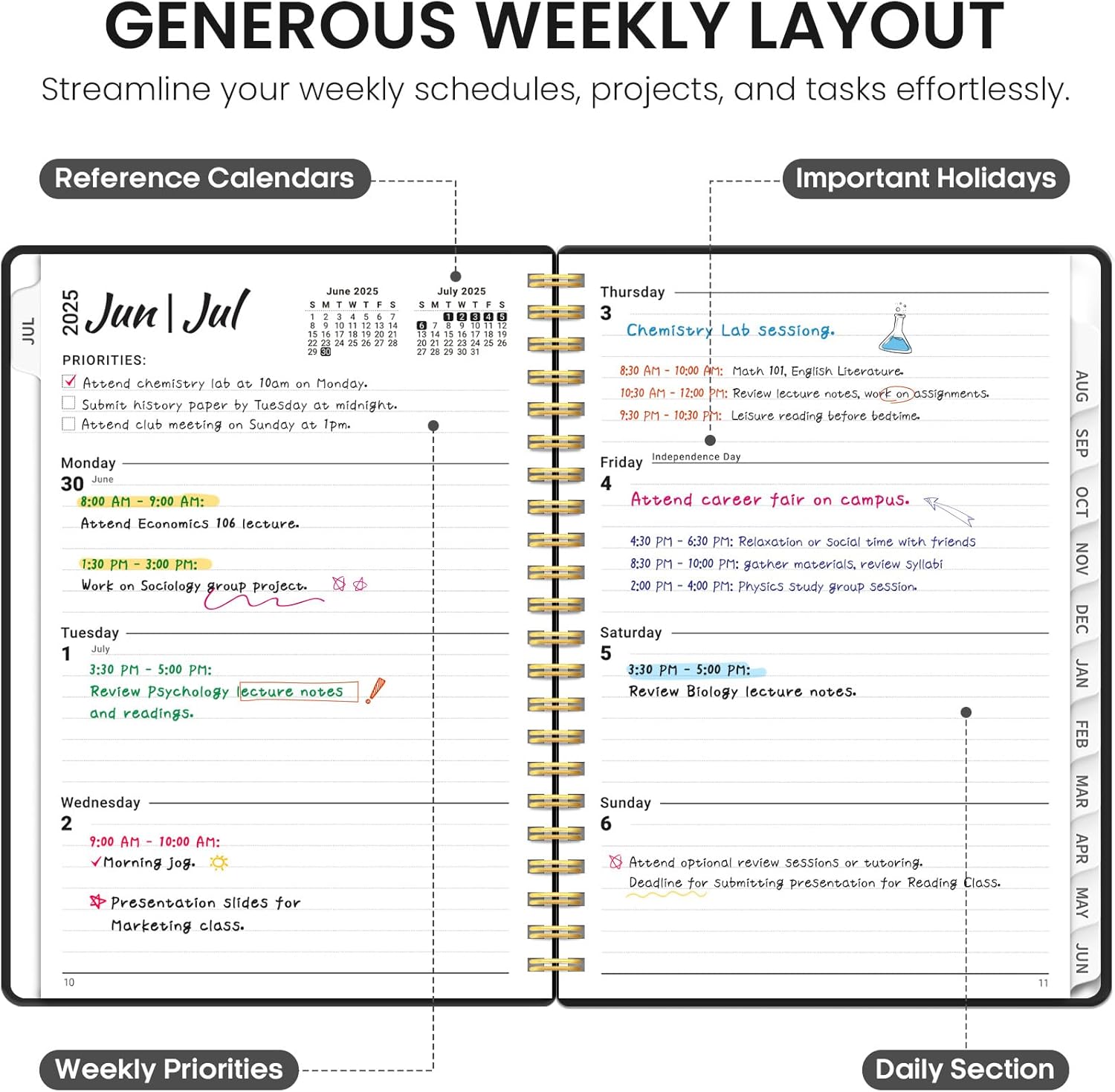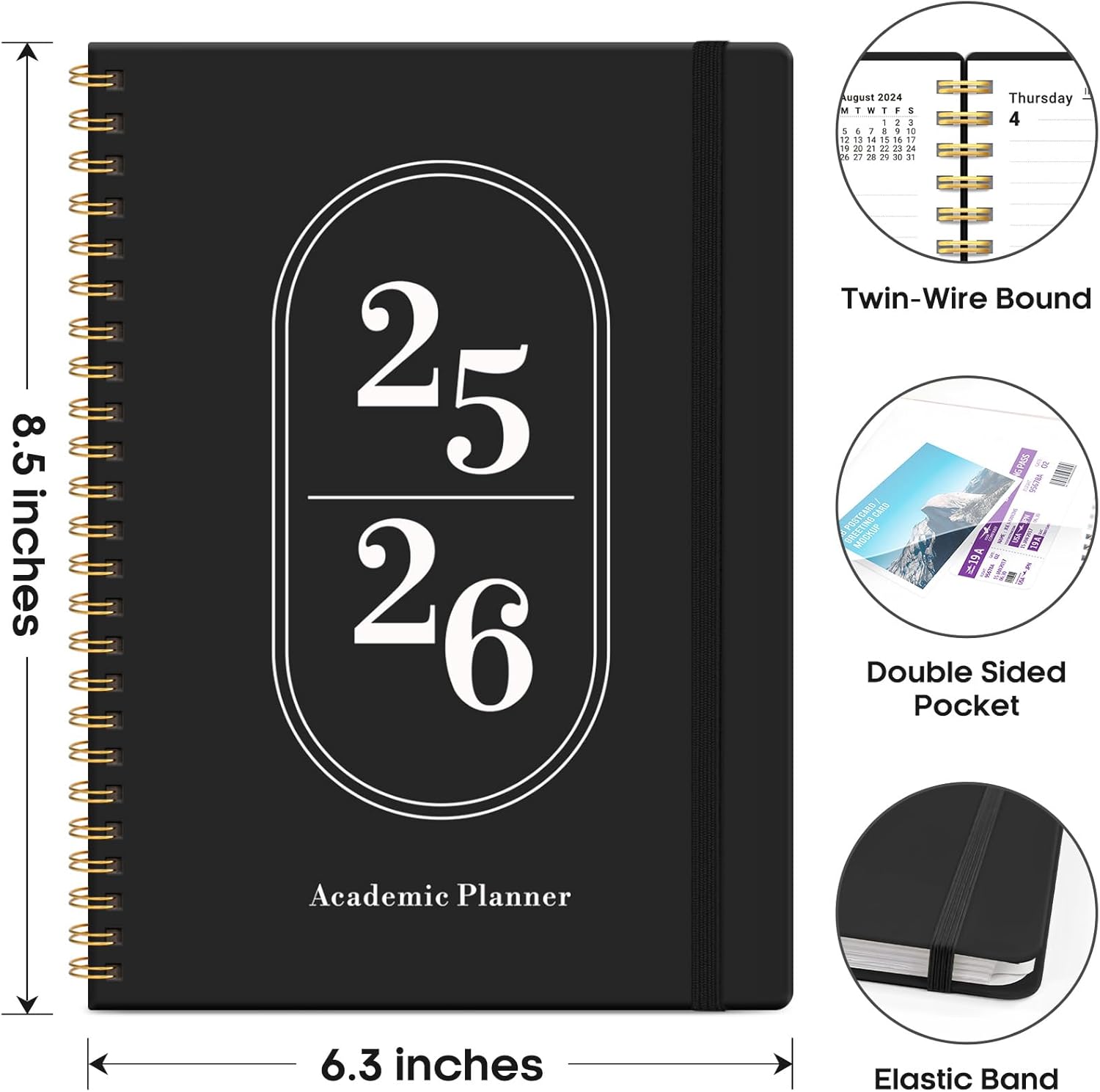 Planner 2025-2026, Academic Year Weekly and Monthly Calender Planner, July 2025 - June 2026, Spiral Bound School Planning Tool, Perfect for Teacher, Student, Women & Men - A5 (6.3" x 8.5"), Black