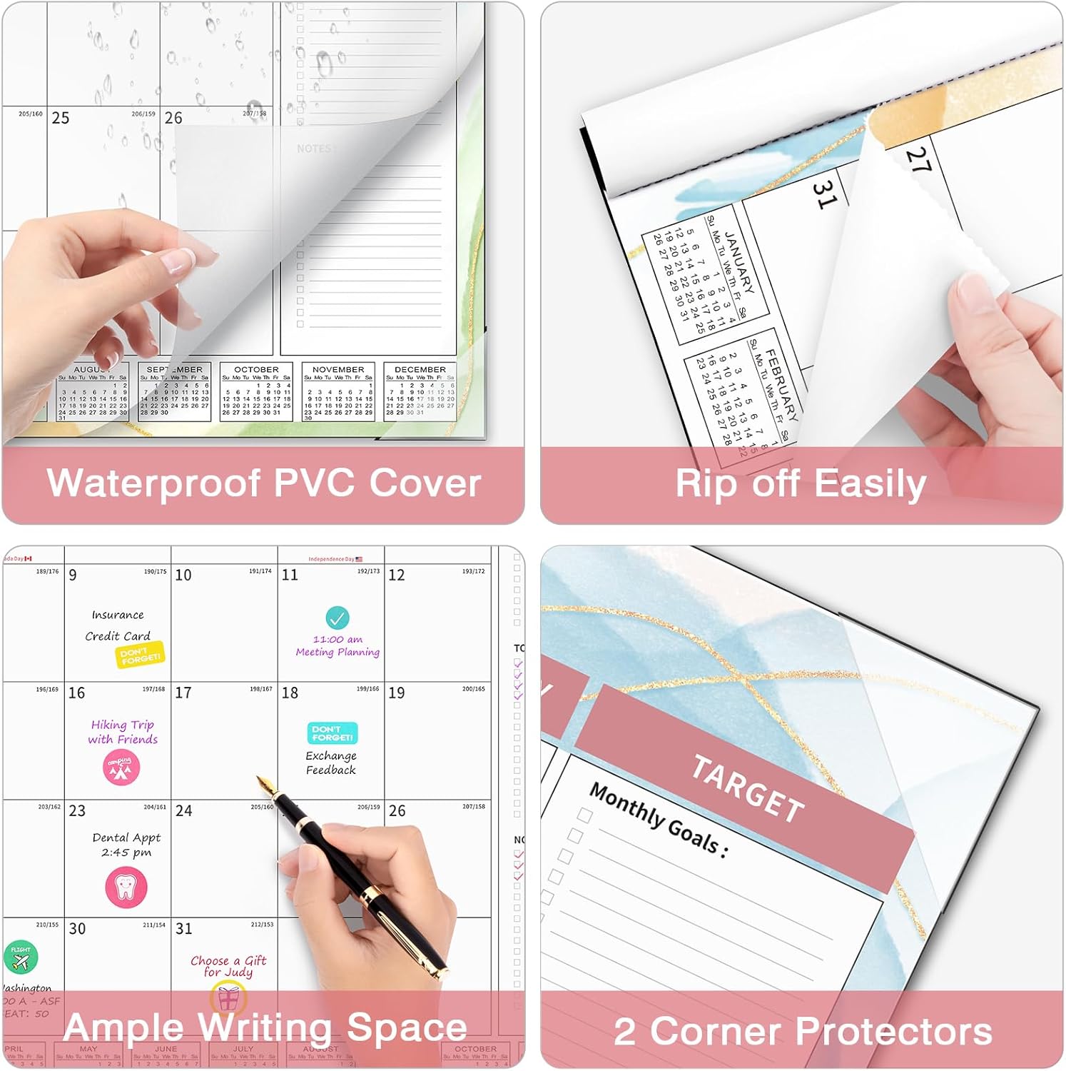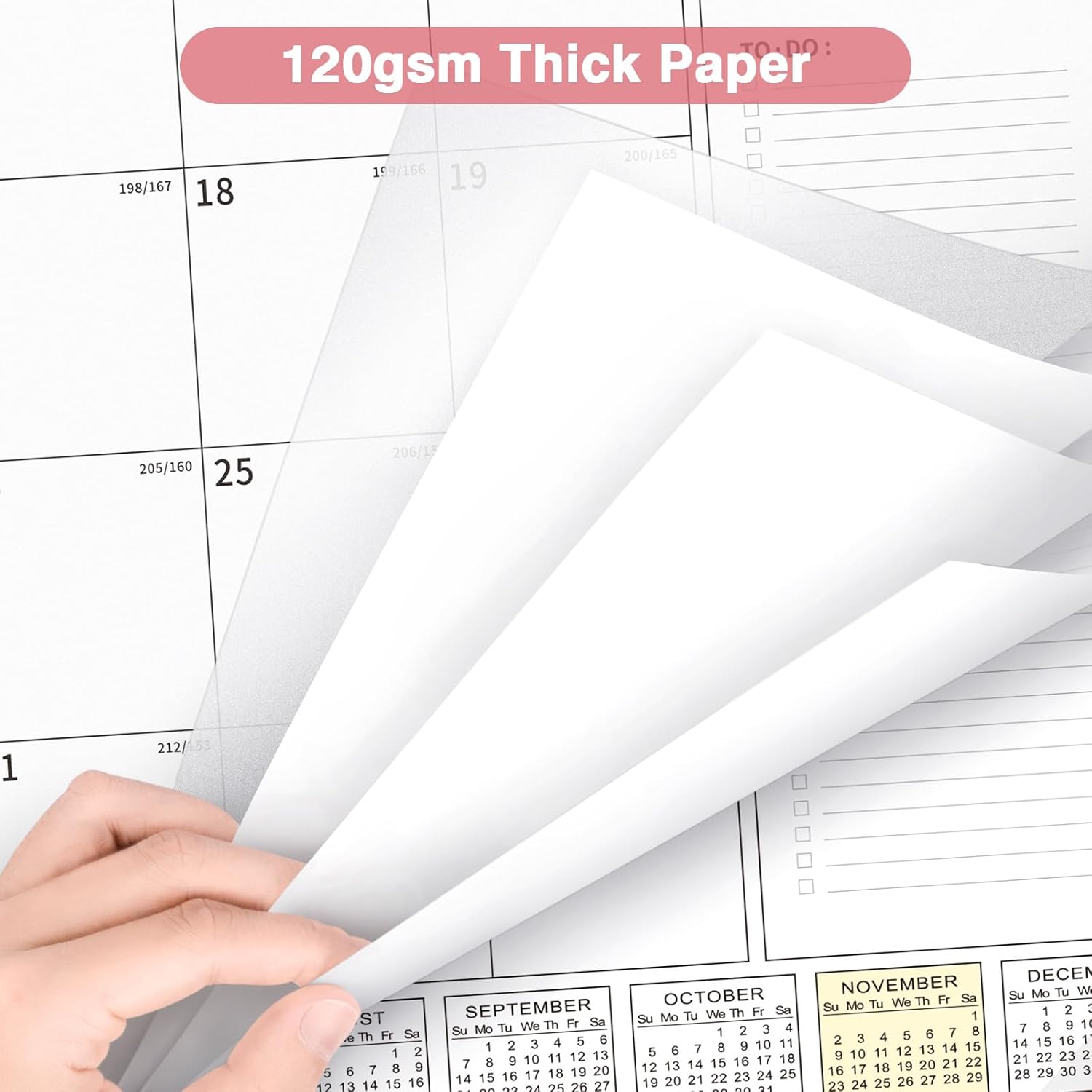 - 【Premium Thick Paper】With a weight of 0.264lb per sheet, the 2025 calendar is designed using premium thick paper, ensuring a high-quality writing experience. It is resistant to ink seepage, resulting in clean and crisp writing. To safeguard the calendar from dust and liquids, it comes with a transparent PVC cover. Two corner protectors are included to keep the pages flat. Plus, the cutting line allows for effortless tearing of each month's page. This desk calendar is perfect to long-term use.