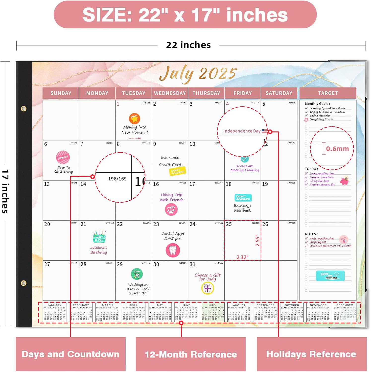 Ospelelf Desk Calendar 2025-2026 Large 22'' x 17'' Calendar 2025 Monthly Desktop Calendar, 18 Month Calendar, Use July 2025 - Dec 2026, Multicolor