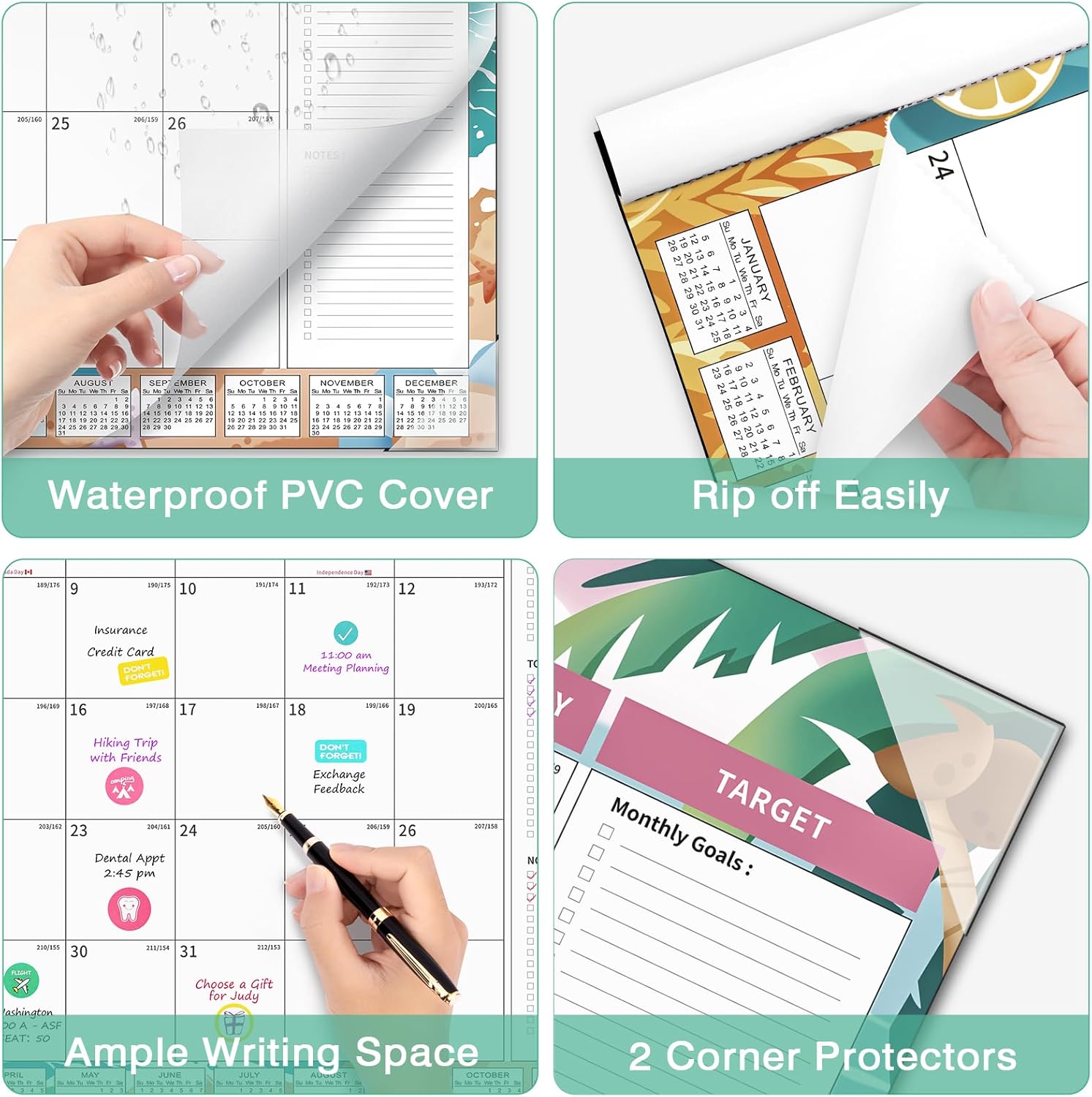 - 【Premium Thick Paper】With a weight of 0.264lb per sheet, the 2025 calendar is designed using premium thick paper, ensuring a high-quality writing experience. It is resistant to ink seepage, resulting in clean and crisp writing. To safeguard the calendar from dust and liquids, it comes with a transparent PVC cover. Two corner protectors are included to keep the pages flat. Plus, the cutting line allows for effortless tearing of each month's page. This desk calendar is perfect to long-term use.