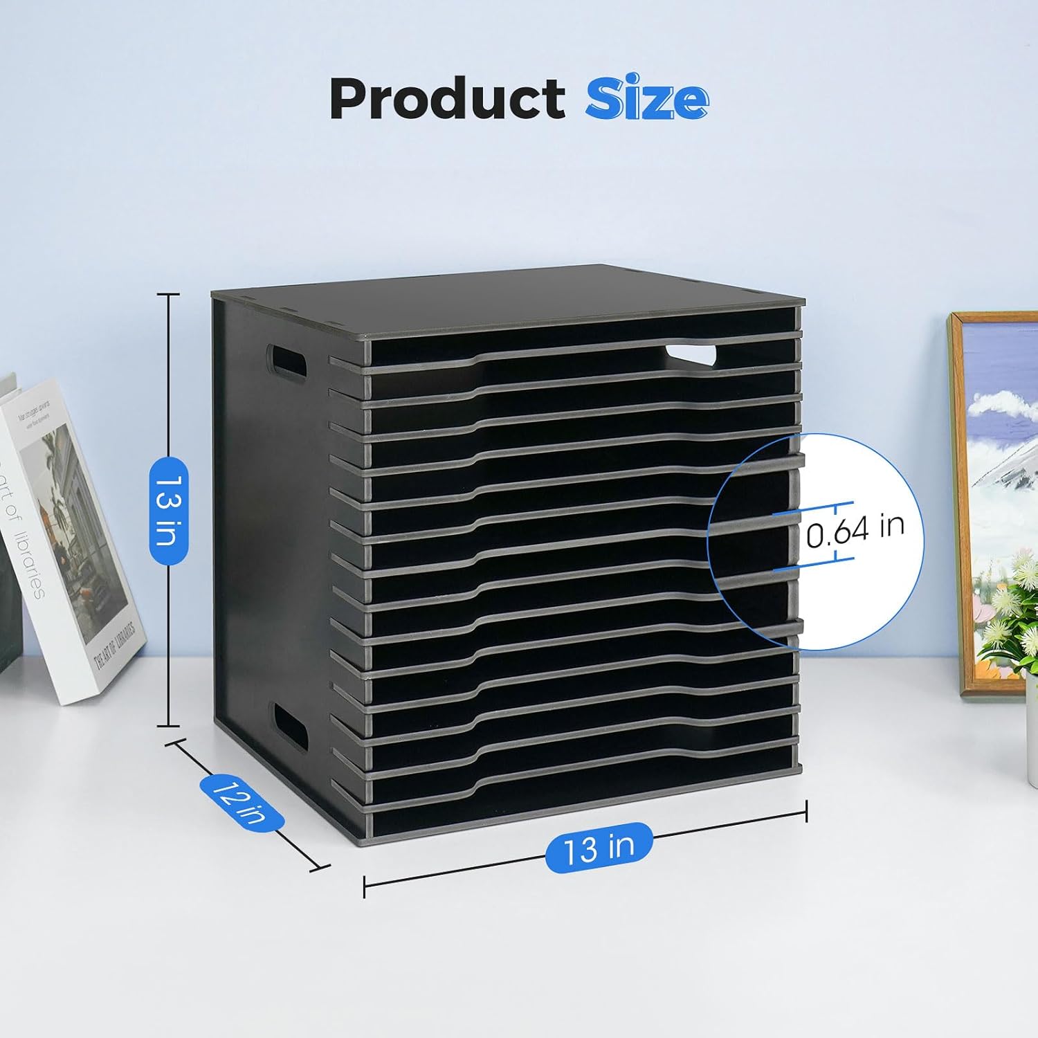 - Space-Saving Design - The overall dimensions of 13"L x 12.2"W x 13"H make the scrapbook paper rack a space-saving storage solution, ideal for craft rooms, home offices, or any area with limited space. And the scrapbook paper storage rack is designed to be compatible with 13" x 13" cabinets