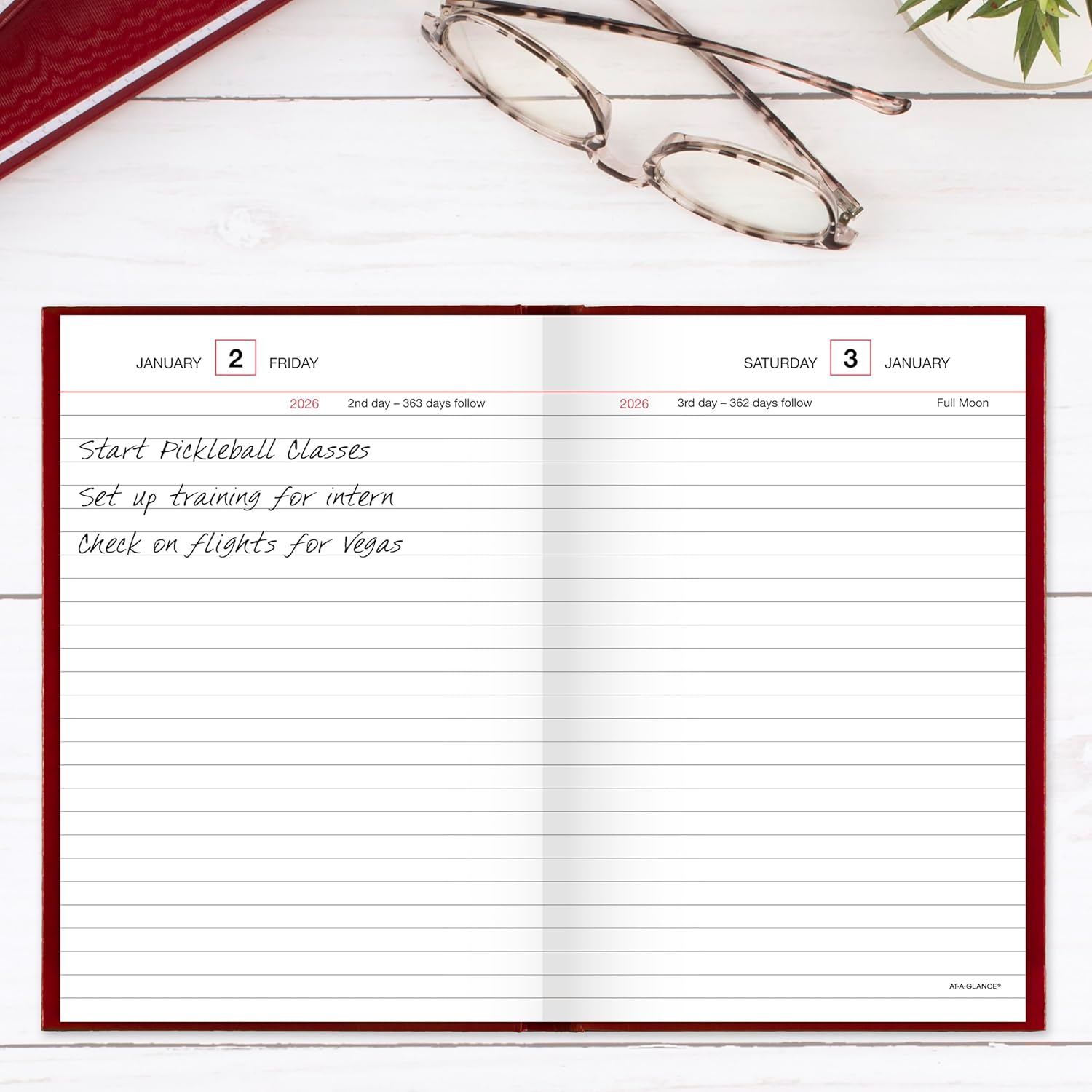 AT-A-GLANCE 2026 Diary, Standard Diary, Daily, 5" x 7-1/2", Small, 12-Month, Hardcover, Red (SD3871326)