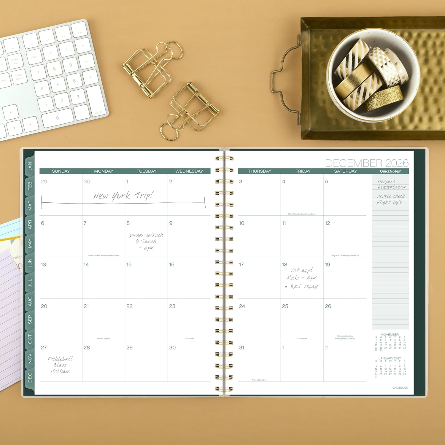- STYLISH & STURDY β Create a lasting relationship with your planner. The durable poly cover helps the planner stand up to wear and tear, while the gold twin wire binding helps keep pages secure and wonβt snag on your bag.