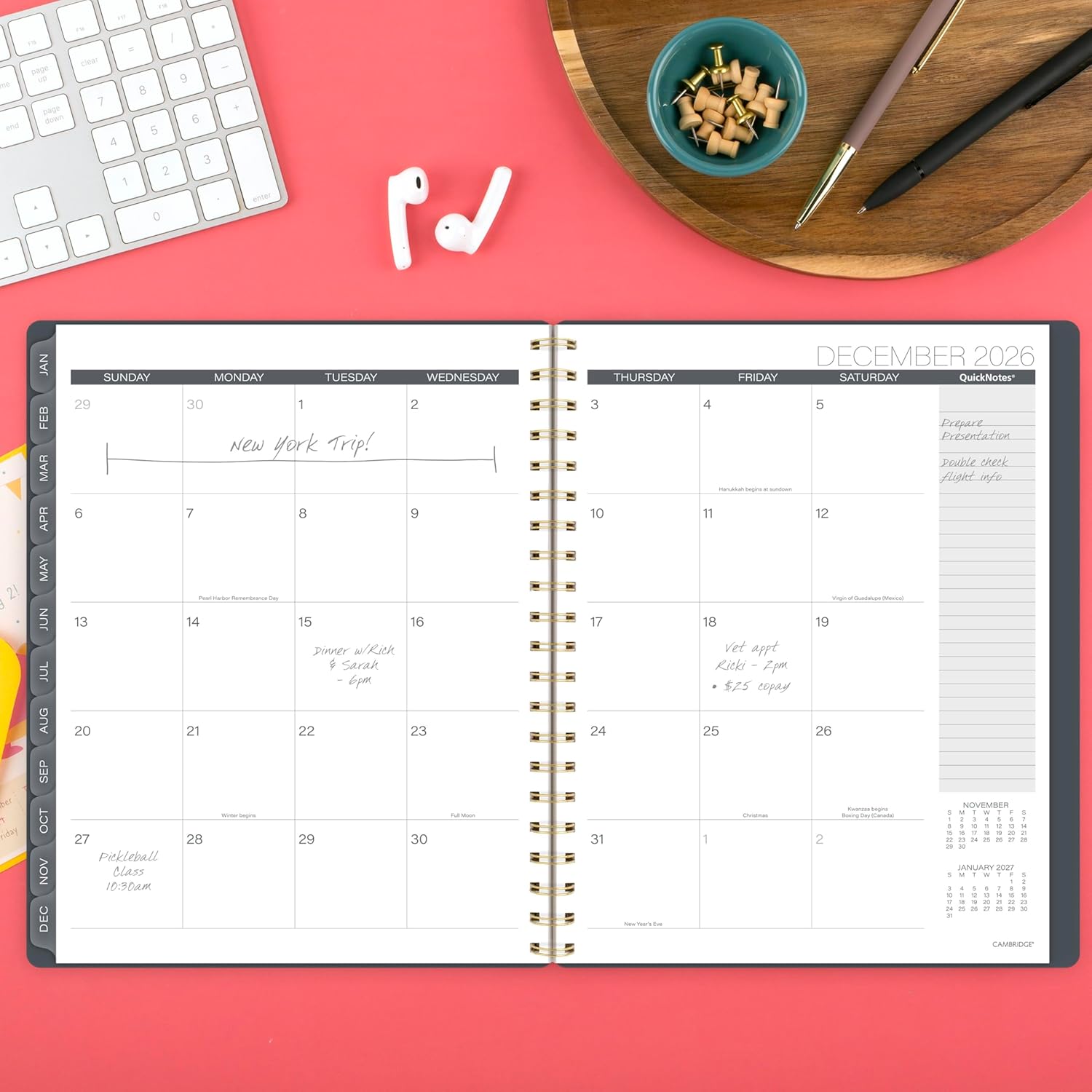 - STYLISH & STURDY β Create a lasting relationship with your planner. The durable poly cover helps the planner stand up to wear and tear, while the gold twin wire binding helps keep pages secure and wonβt snag on your bag.
