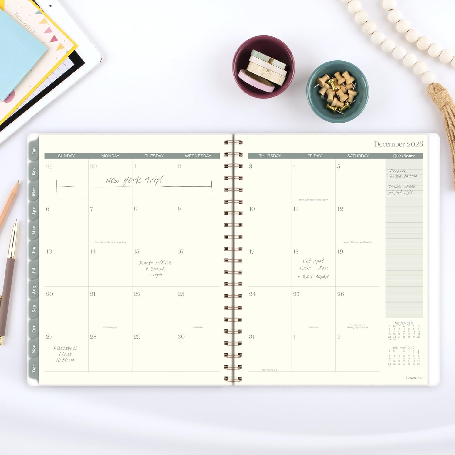 - STYLISH & STURDY β Create a lasting relationship with your planner. The durable poly cover helps the planner stand up to wear and tear, while the bronze twin wire binding helps keep pages secure and wonβt snag on your bag.