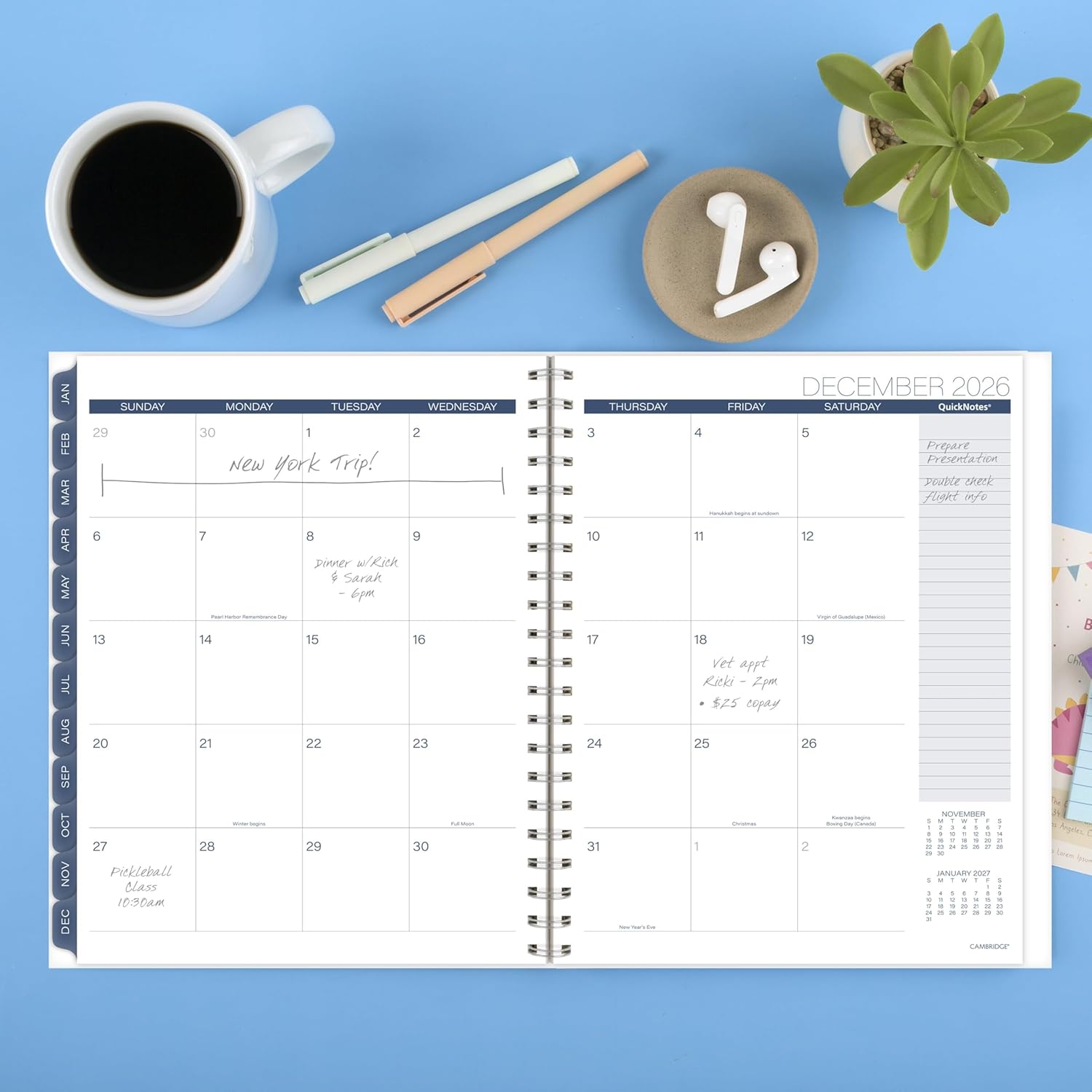 - YOUR PLANS, YOUR WAY β See your daily schedule and big picture plans in an instant. Weekly spreads have open daily sections, a QuickNotes area and To-Do list. Tabbed months for easy navigation. Pages measure 8.5" x 11".