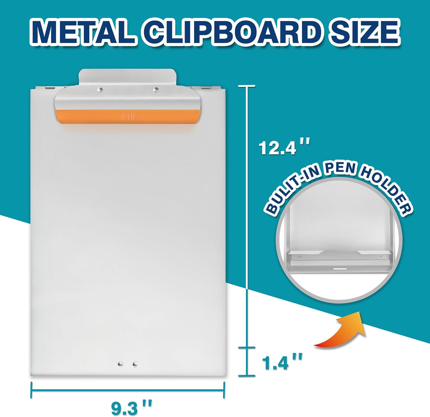 H4D Metal Clipboard with Storage, Rubber Covered Clip Protects Paper and No Indentations Left, Letter Size