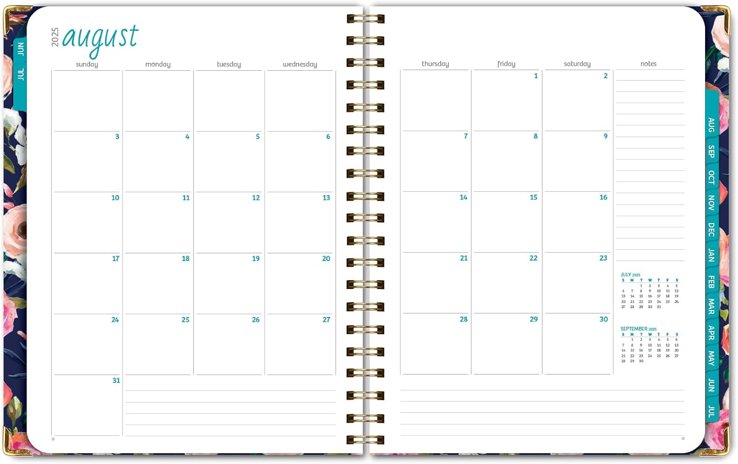 HARDCOVER Academic Year 2025-2026 Planner: (June 2025 Through July 2026) 8.5"x11" Daily Weekly Monthly Planner Yearly Agenda. Bookmark, Pocket Folder and Sticky Note Set (Small Navy Floral)