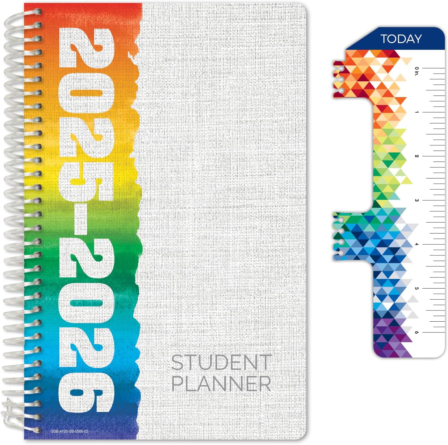 Global Datebooks Dated Middle School or High School Student Planner for Academic Year 2025-2026 Includes Ruler/Bookmark and Planning Stickers (Block Style - 5.5"x8.5" - Rainbow Linen)